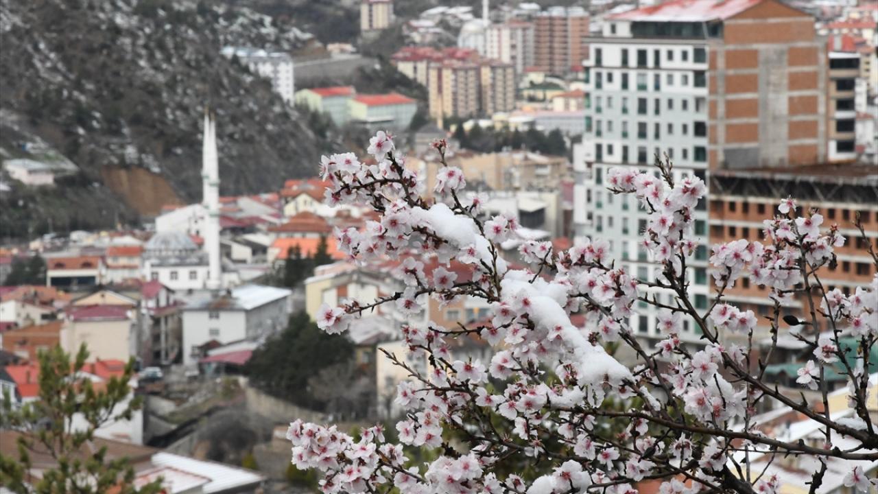 Gümüşhane`de kar yağışı ile soğuk hava yaşamı olumsuz etkiledi. Kent merkezinde çiçek açan kayısı ve badem ağaçları da kar altında kaldı.