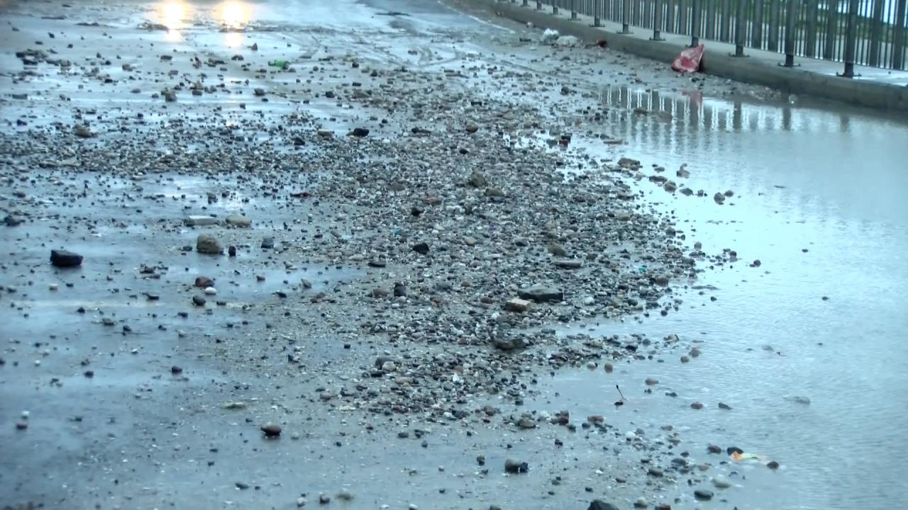 Küçükçekmece`deki Menekşe sahilinde ise, denizde oluşan dalgalar, yosun ve taşları sahil yoluna taşıdı.