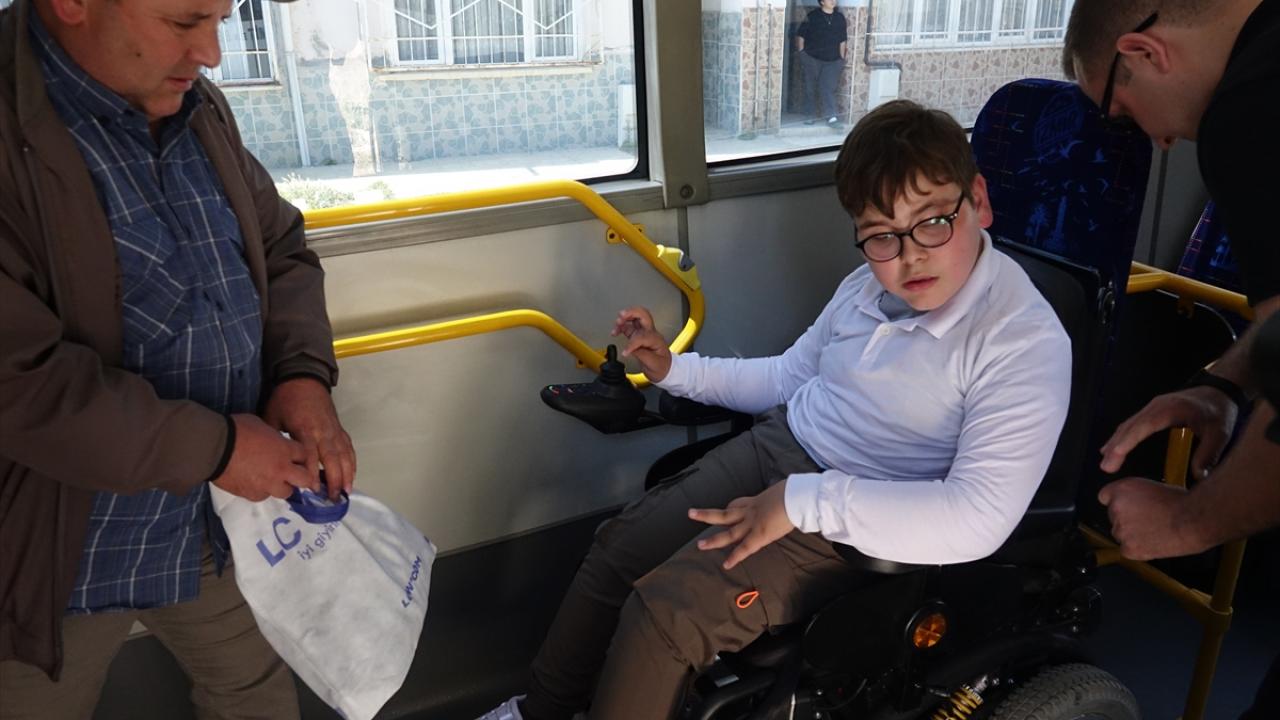 Hamiyyet-Ferudun Sözen Özel Eğitim Uygulama Okulu 7`nci sınıf öğrencisi Muhammet, belediyeye ait engelli rampası bulunan özel donanımlı otobüsle evinden alındı.