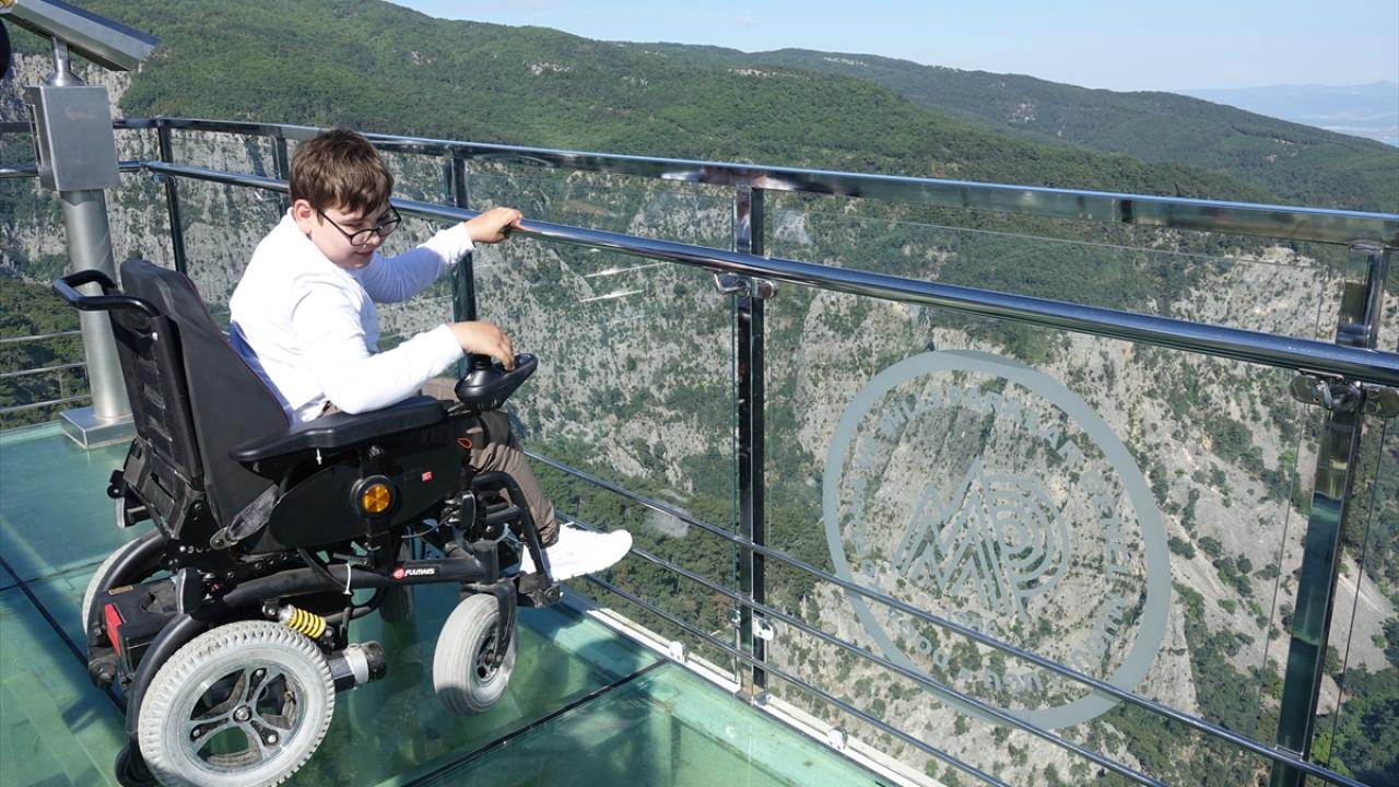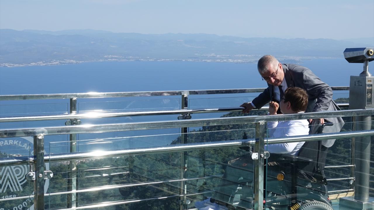 Beyin damarlarından biri tıkalı ve bir damarı eksik olarak dünyaya gelen doğuştan bedensel engelli 14 yaşındaki Muhammet Hayran, karşılaştığı Edremit Belediye Başkanı Mehmet Ertaş`a, cam seyir terasına çıkmak istediğini söyledi.