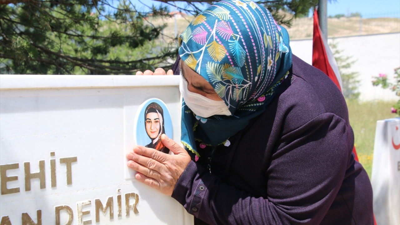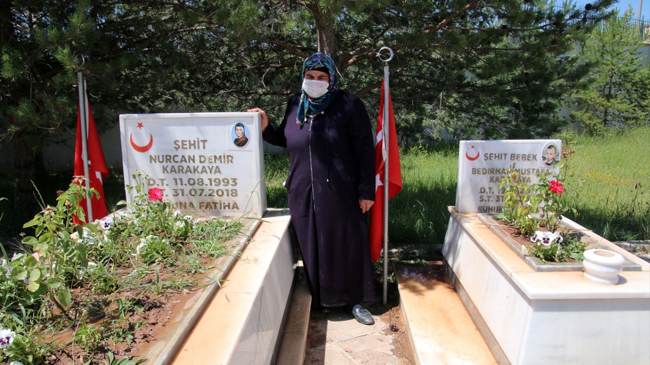 Bedirhan bebeğin anneannesi şehitlikte kızı ve torununun mezarını ziyaret etti