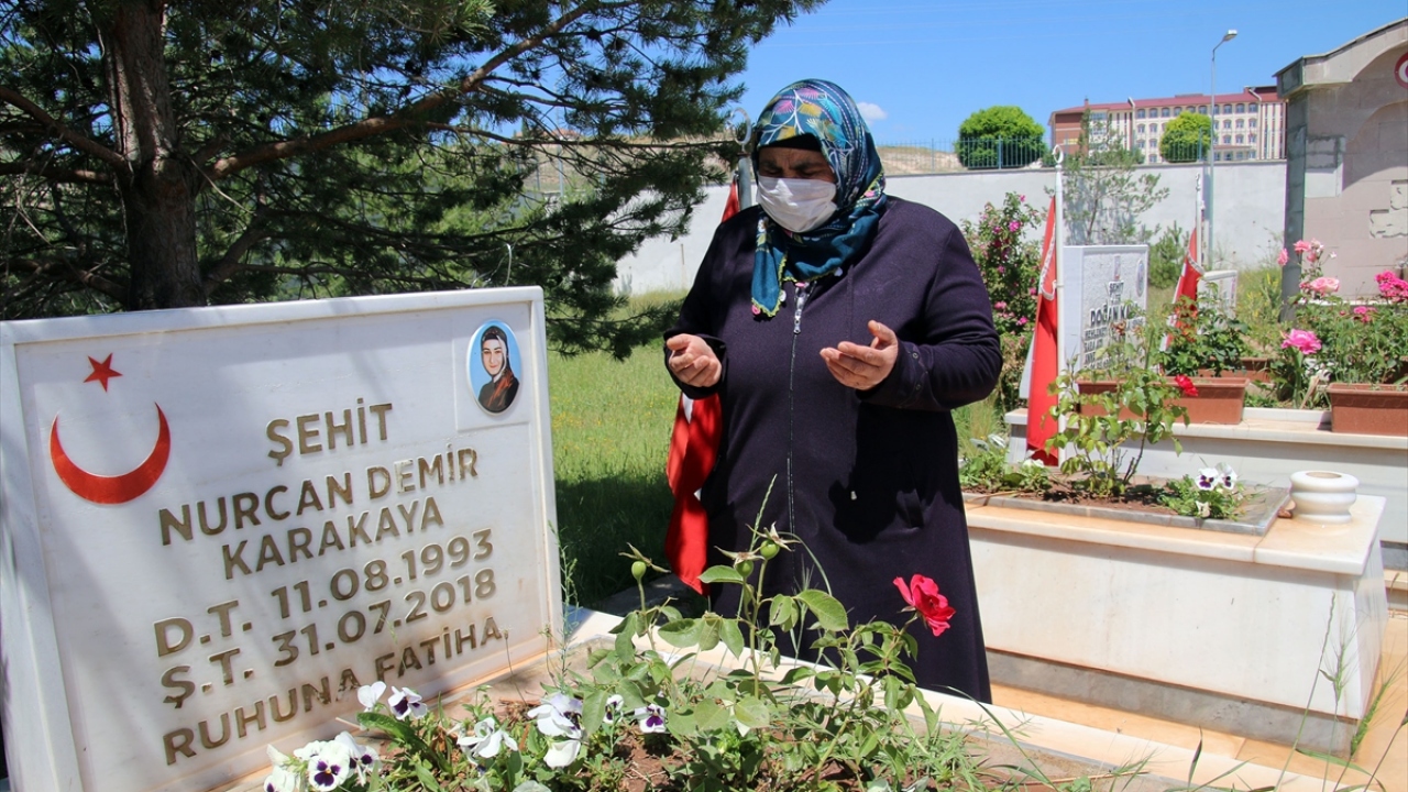 Asker eşi Nurcan Karakaya ile bebeği Bedirhan'ın, 2018 yılında şehit edildiği saldırının faillerinden "Partizan" kod adlı Adil Akyürek'in, Hakkari'de terör örgütü PKK'ya yönelik operasyonda etkisiz hale getirilmesinin ardından, şehit bebeğin Şarkışla ilçesinde yaşayan anneannesi Suudiye Demir, torunu ve kızının kabrini ziyaret etti.