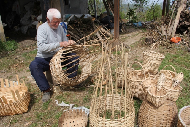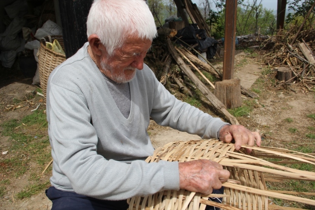 Giresunlu 90 yaşındaki Bekir Demiralp, 72 yıldır fındık ağacı dallarını kullanarak ördüğü sepetleri satarak geçimini sağlıyor. Merkeze bağlı Kemaliye köyünde yaşayan 5 çocuk ve 8 torun sahibi Demiralp, gençlik yıllarında babasından öğrendiği sepet örücülüğüne ilerleyen yaşına rağmen devam ediyor.