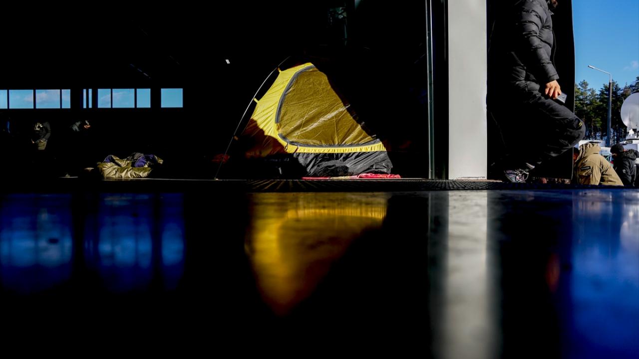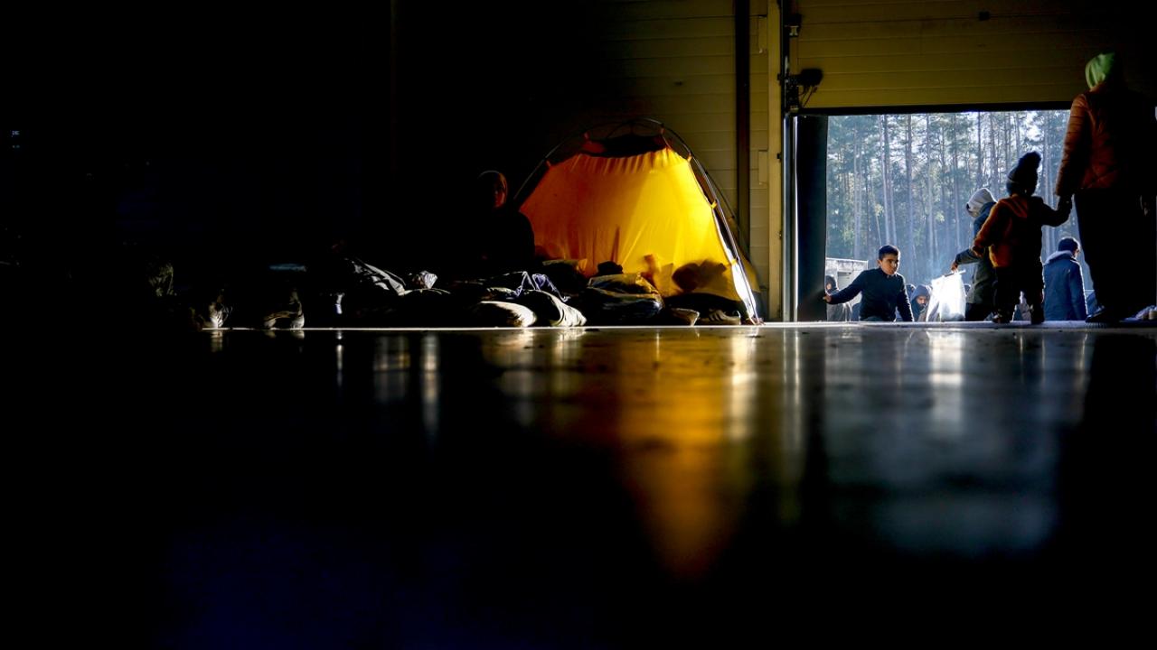 Polonya sınırı boyundaki çadırlarda bekleyen çok sayıda çocuk ve kadının bulunduğu 2 bin civarındaki kişi, uzun bir aradan sonra ilk kez sıcak bir ortamda uyudu. Çok az sayıda kişi geceyi bina dışında kurdukları çadırlarda geçirdi.