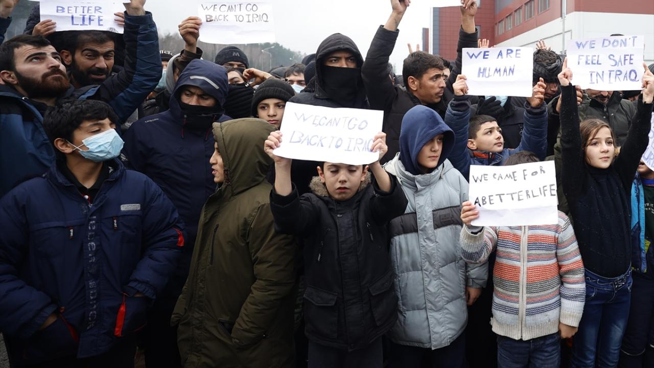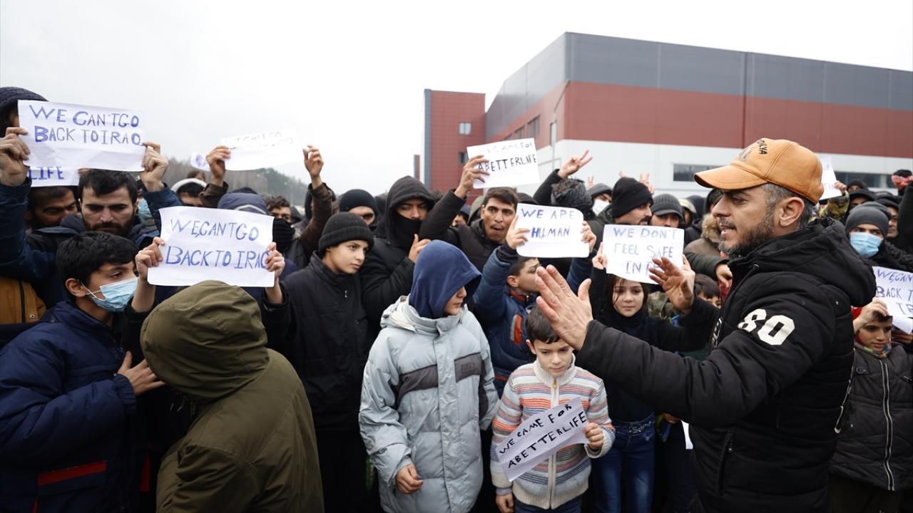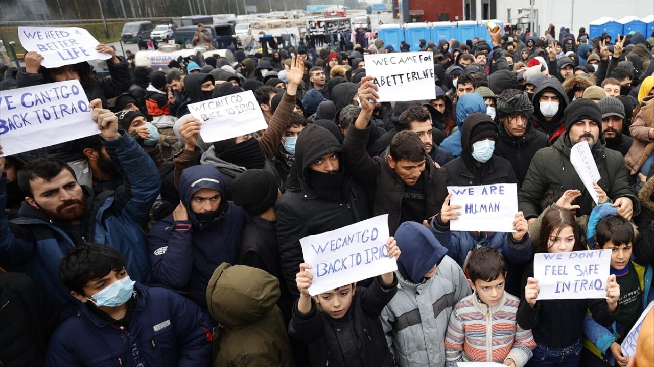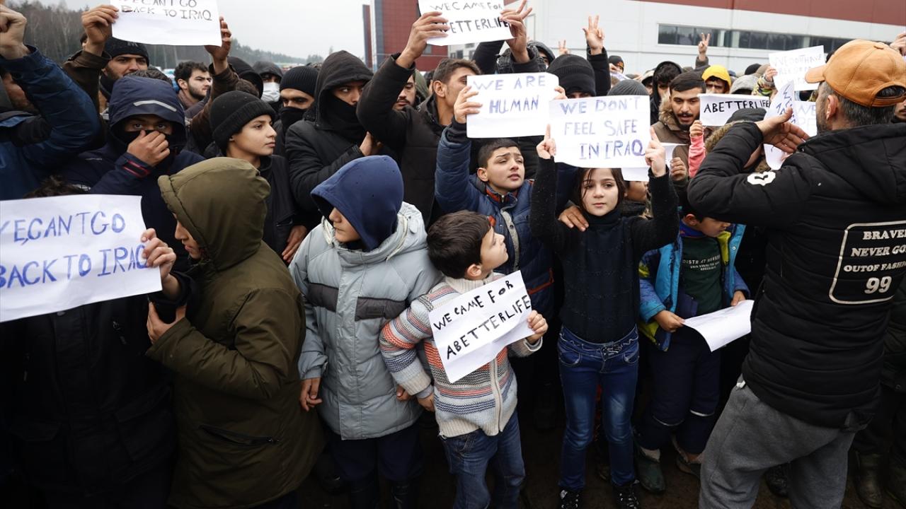 Belarus-Polonya sınırında Avrupa'ya göç yolunda bekleyenler gösteri yaptı