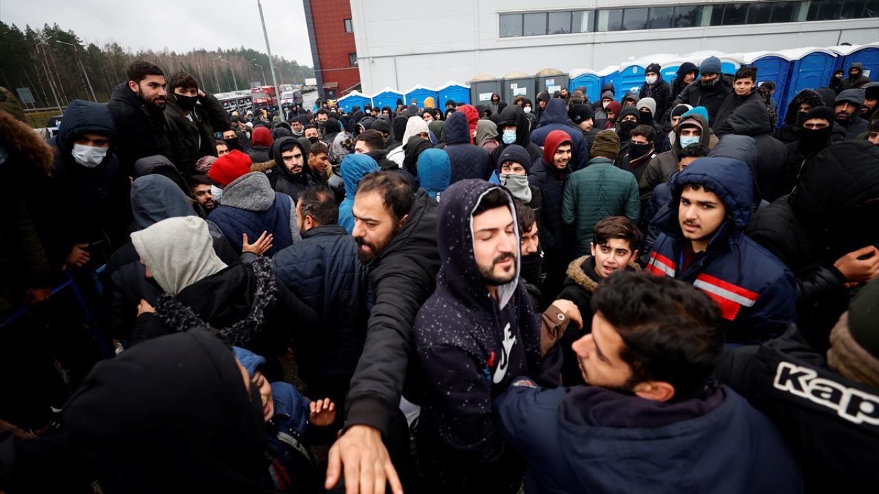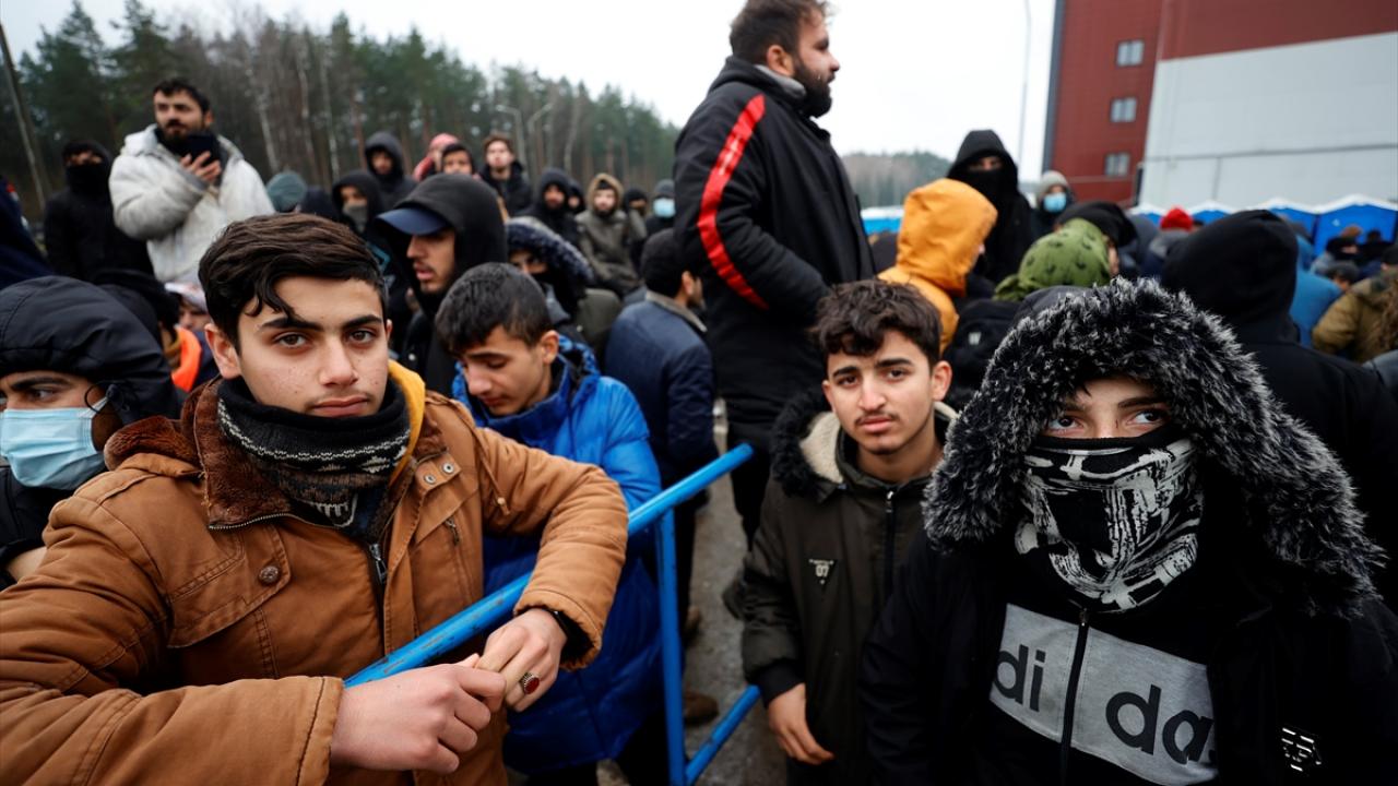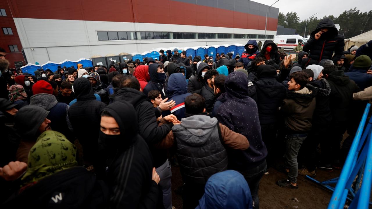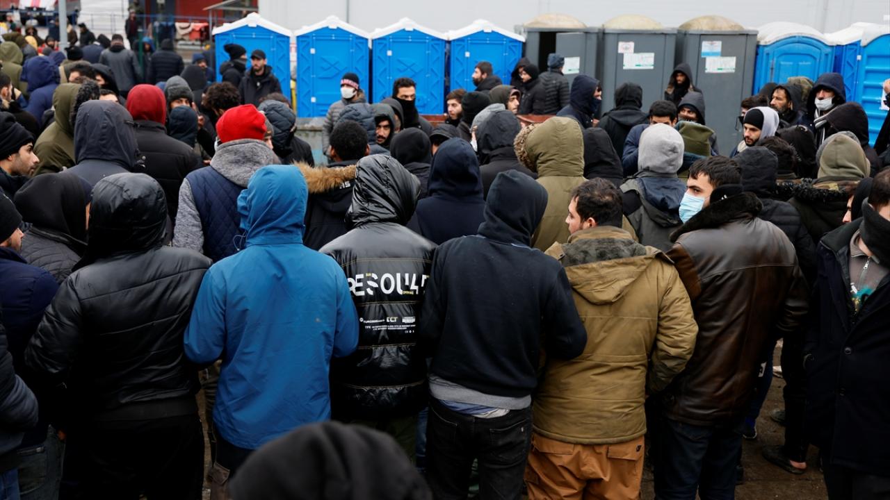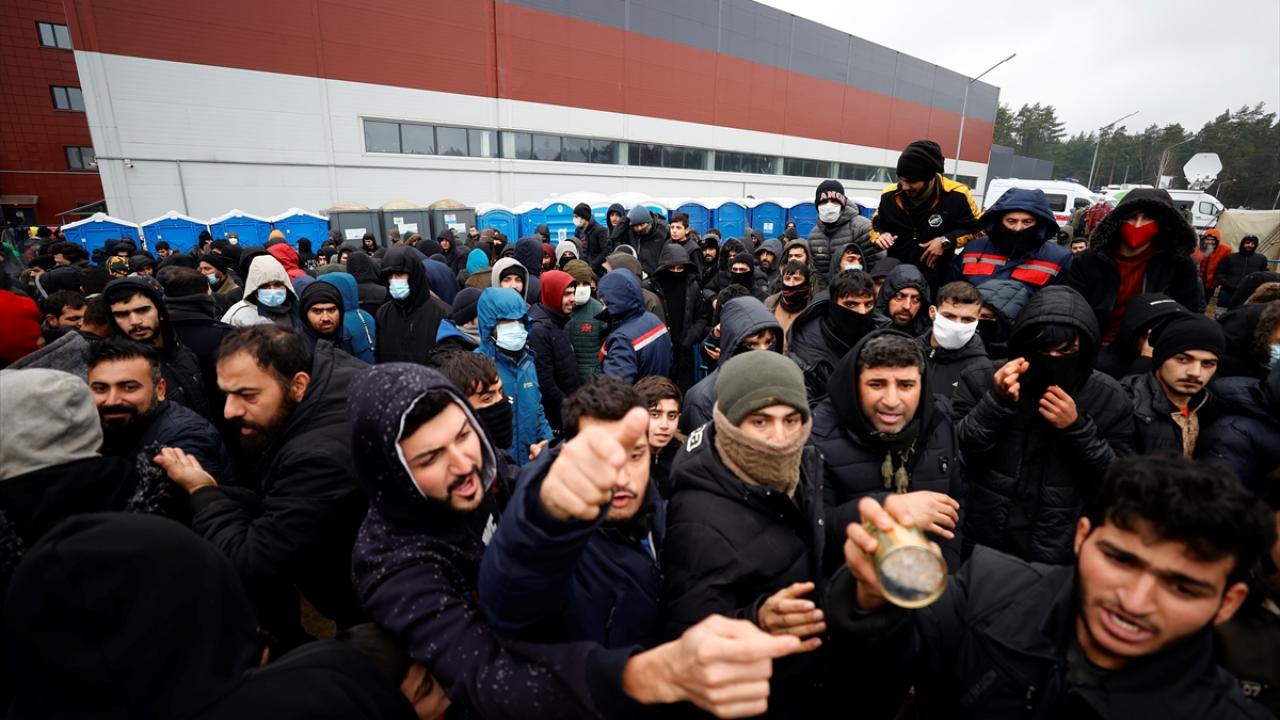 Belarus-Polonya sınırındaki kapalı alanda Avrupa'ya göçme arayışla bekleyişlerini sürdürenler, kaderlerinin bir an önce belirlenmesi için gösteri düzenledi.