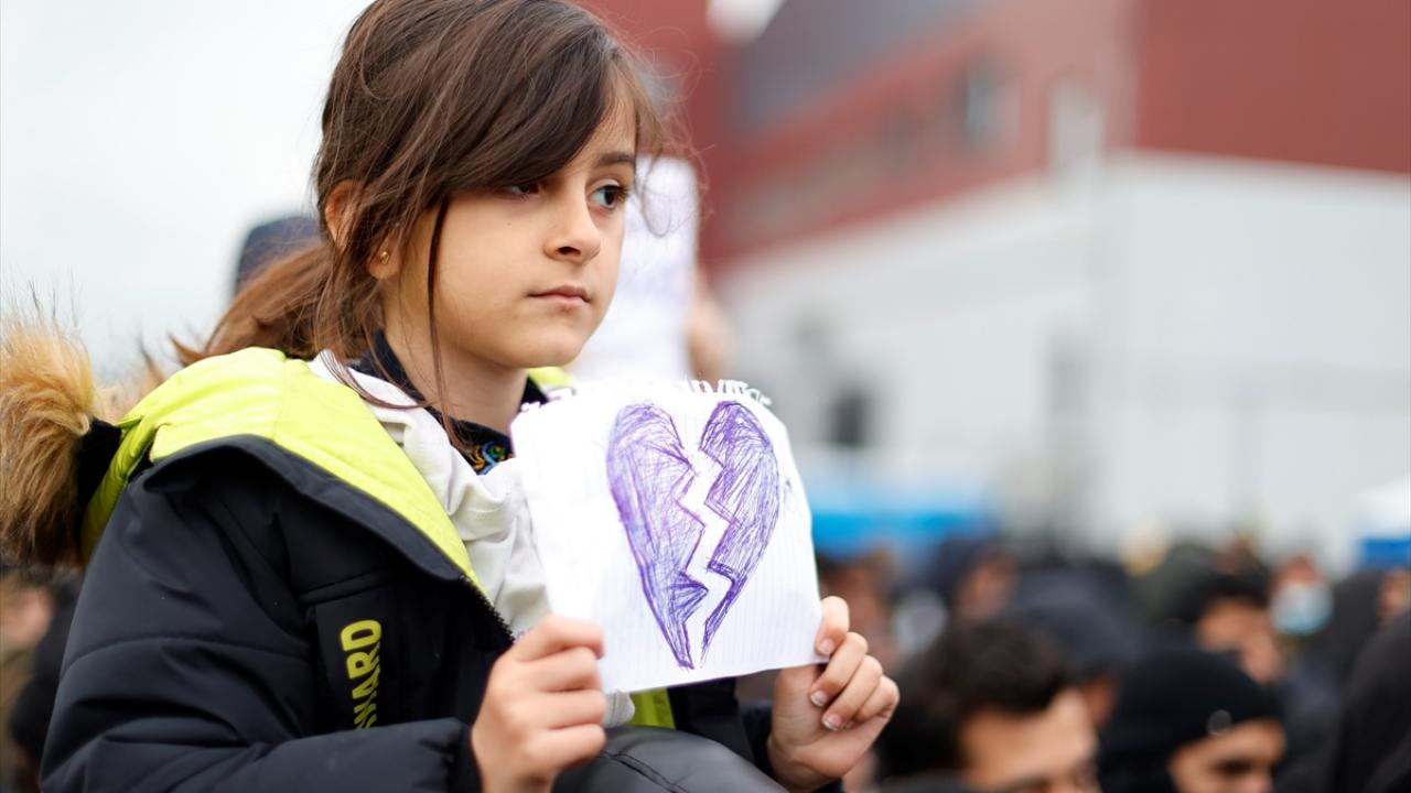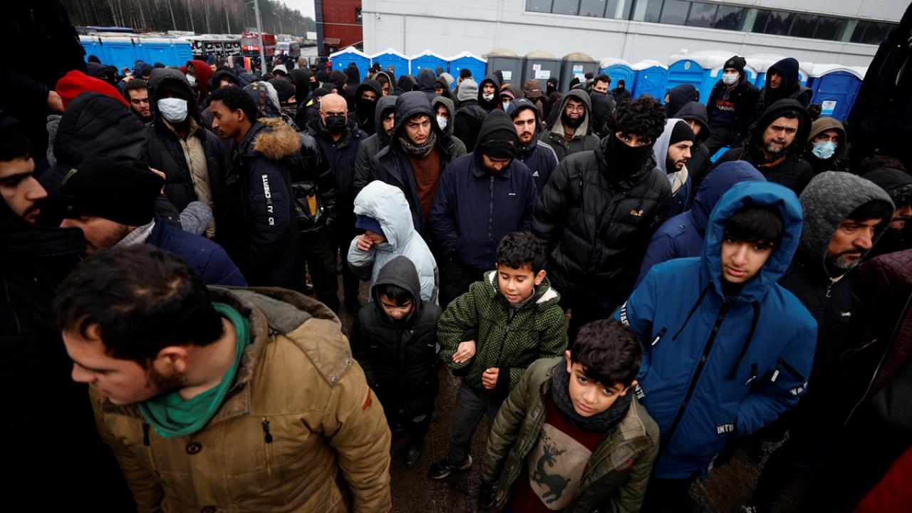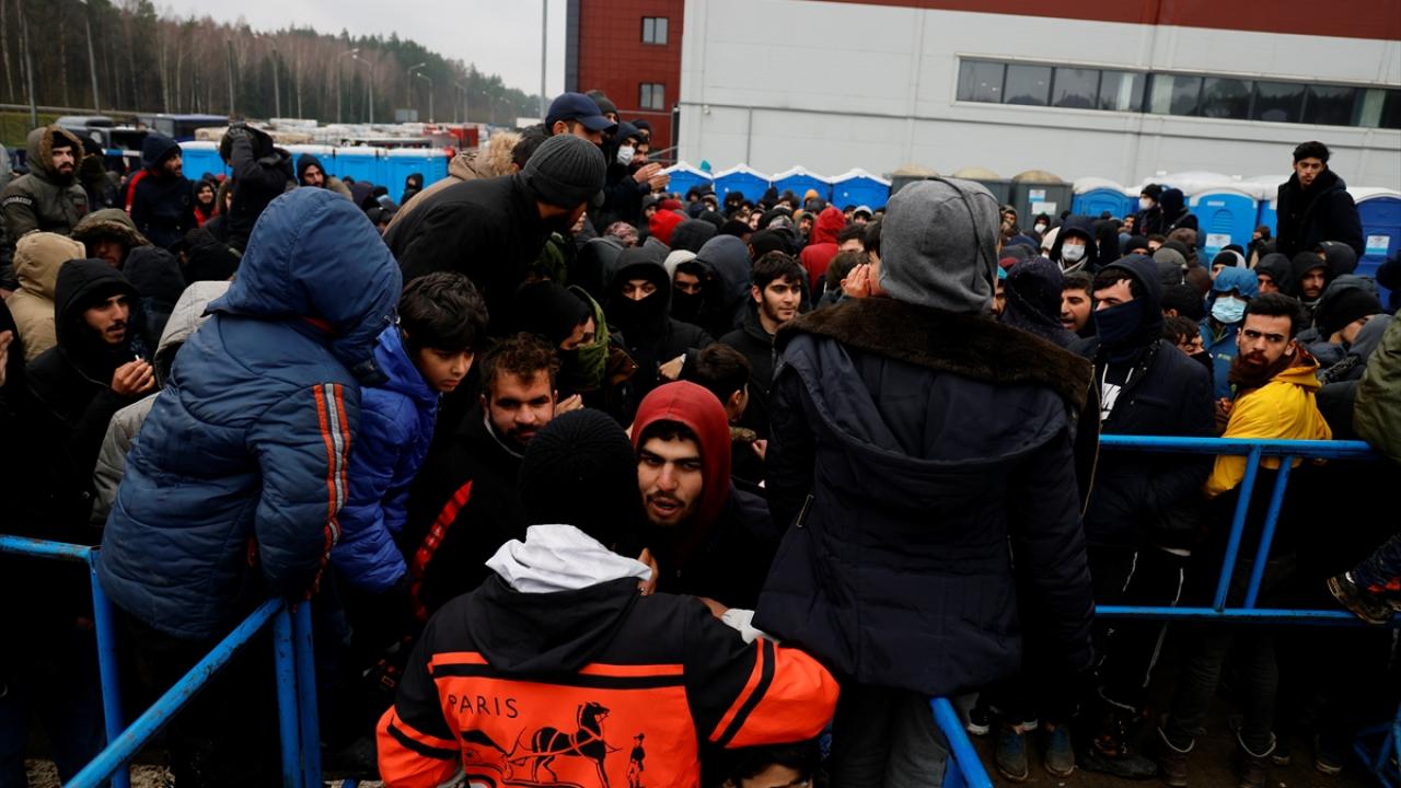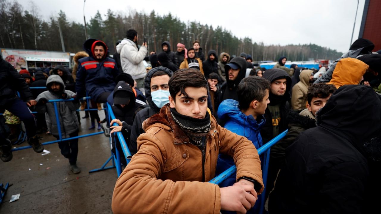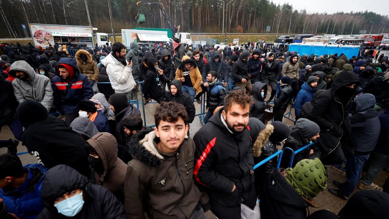 Belarus-Polonya sınırındaki kapalı alanda Avrupa'ya göçme arayışla bekleyişlerini sürdürenler, kaderlerinin bir an önce belirlenmesi için gösteri düzenledi.