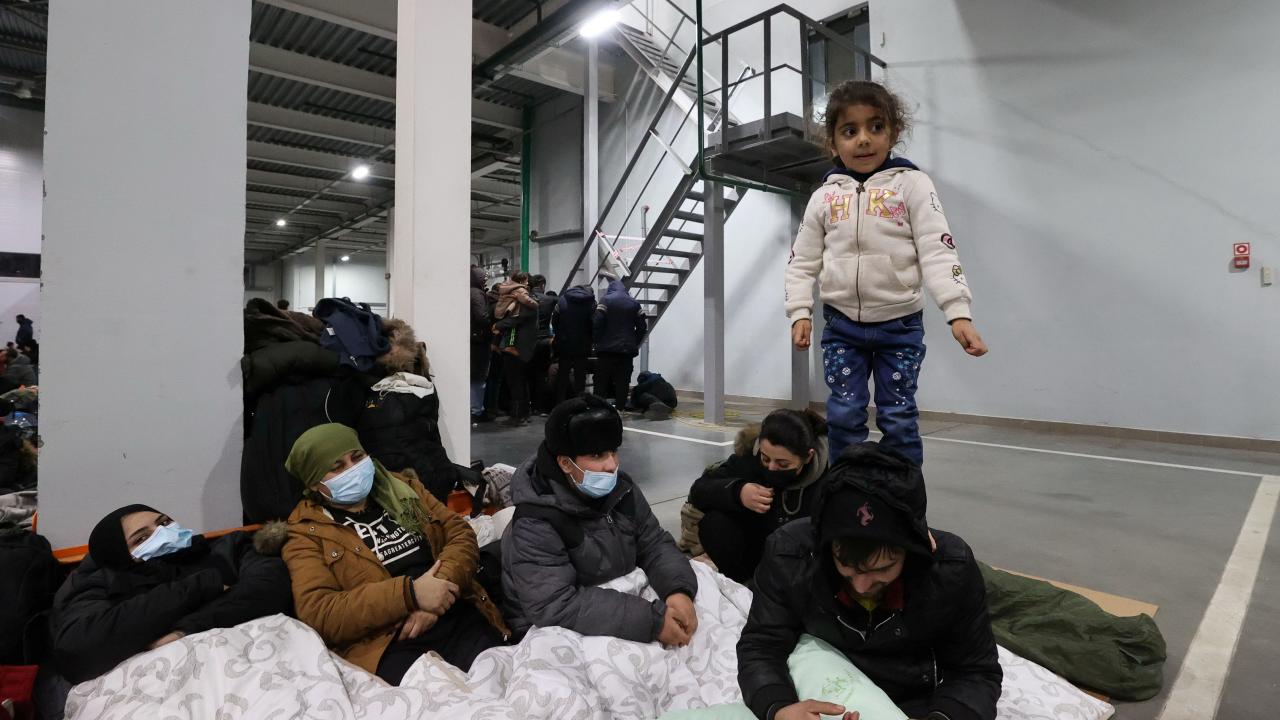 Göçmenler, Grodno bölgesindeki Belarus-Polonya sınırındaki ulaşım ve lojistik merkezi Bruzgi'de kalıyor.