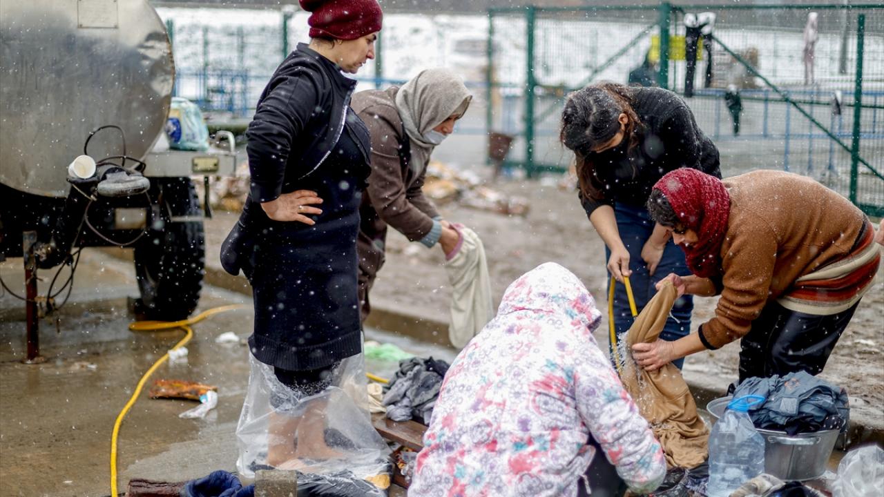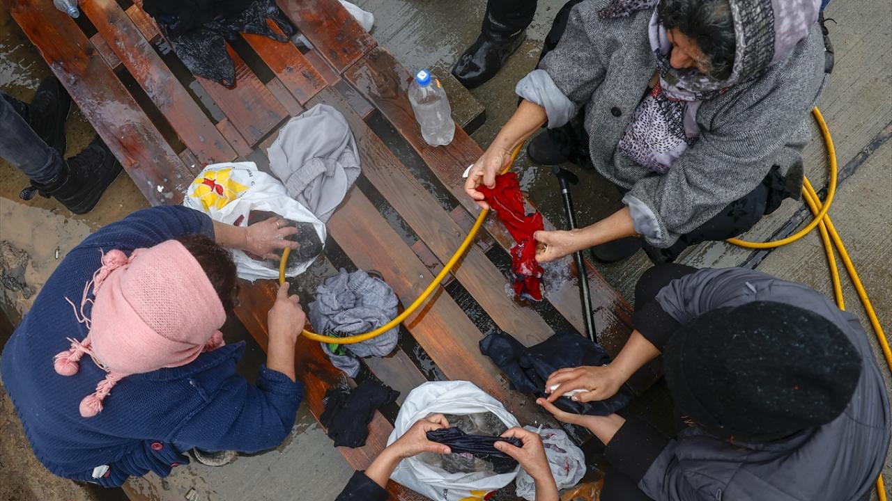 Kadınlar, zorlu şartlar altında çamaşır yıkıyor.