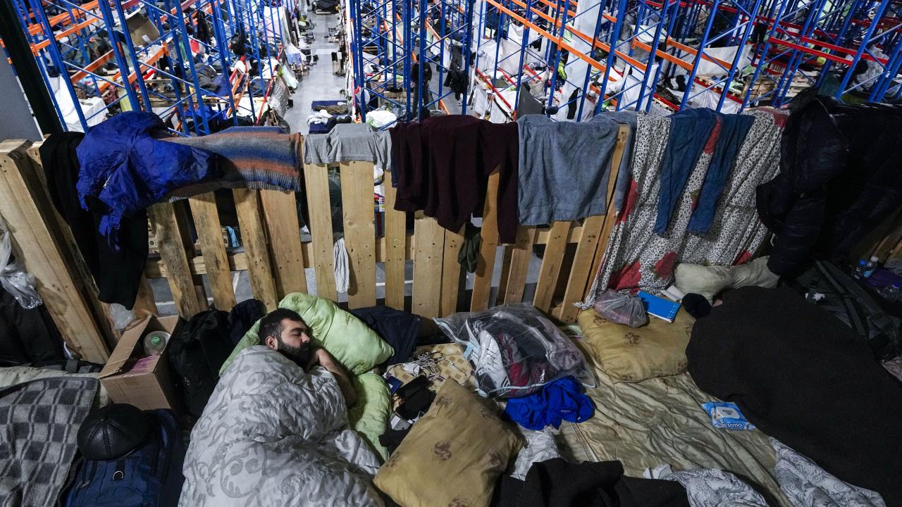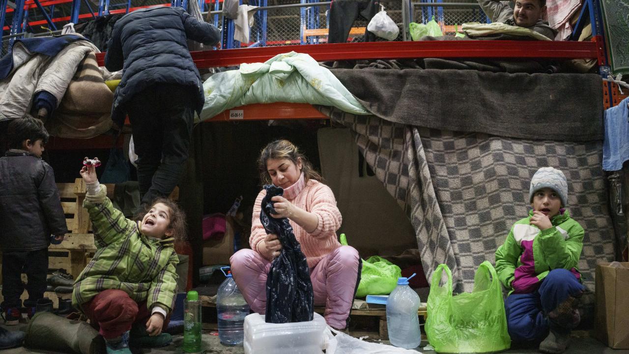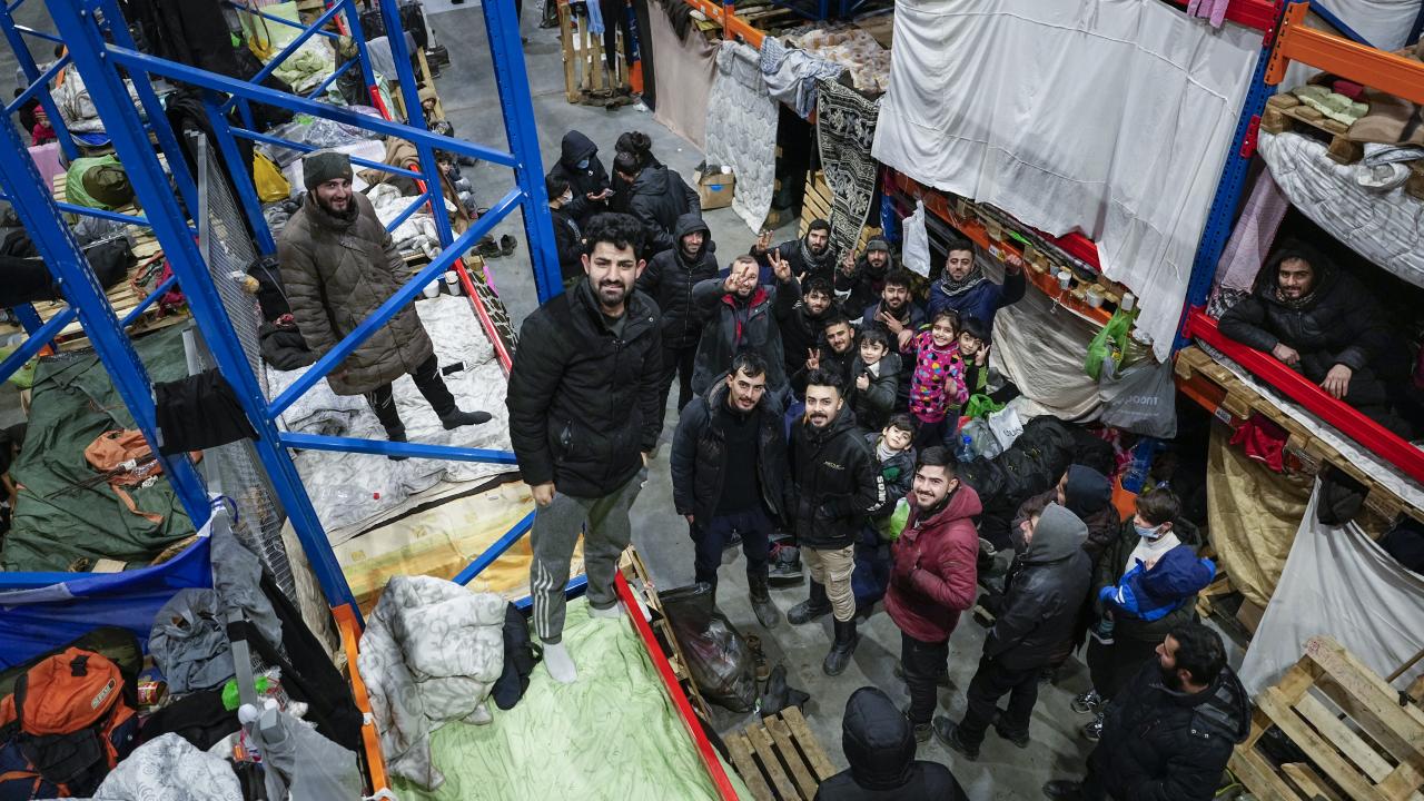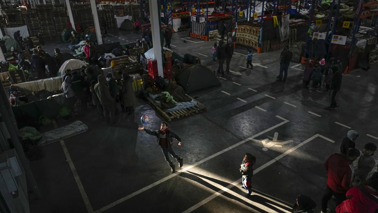 Ancak sıcaklıklar donma noktasının altına düştüğünde sınırdaki yaşam giderek daha zor hale geldi. Göçmenlerin bulunduğu depoda hava hala o kadar soğuk ki içerideki insanlar dış giysilerini üzerinde tutuyor.