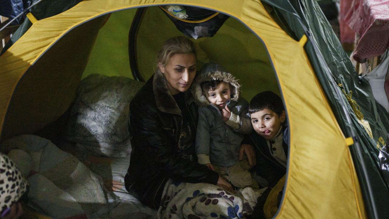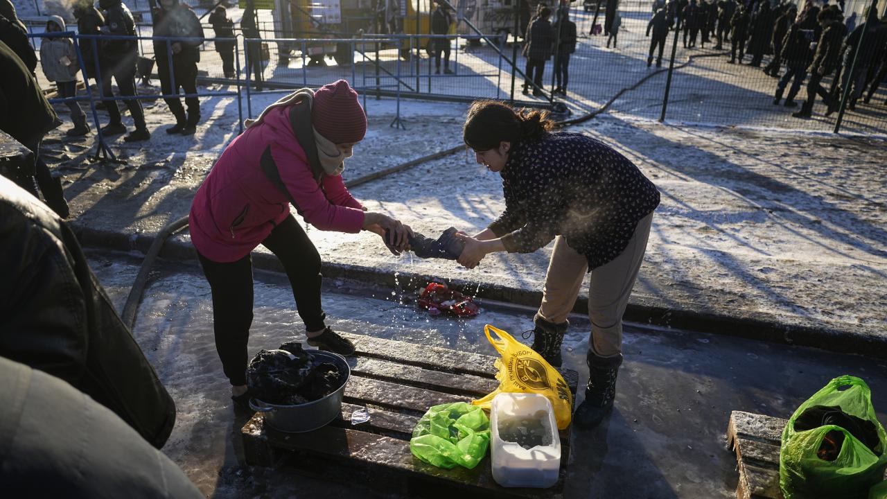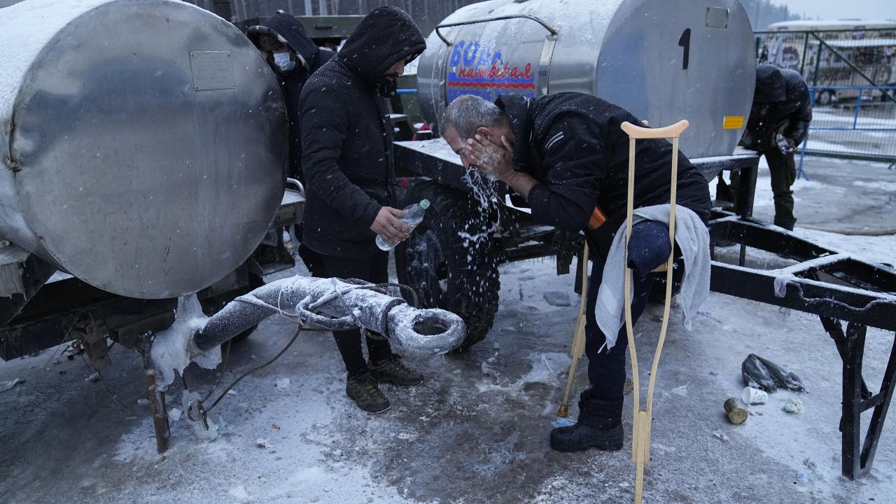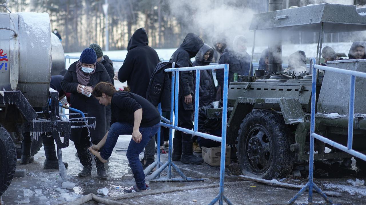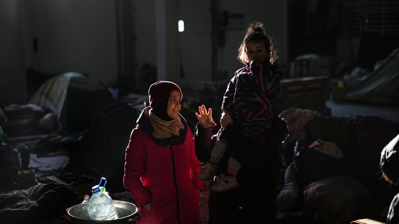 Ancak sıcaklıklar donma noktasının altına düştüğünde sınırdaki yaşam giderek daha zor hale geldi. Göçmenlerin bulunduğu depoda hava hala o kadar soğuk ki içerideki insanlar dış giysilerini üzerinde tutuyor.