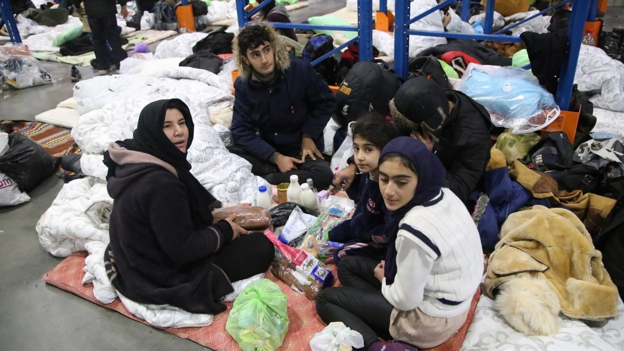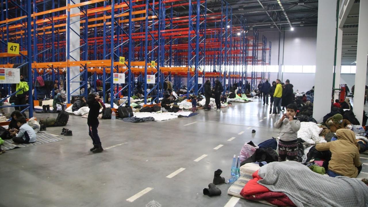 Belarus-Polonya sınırındaki göçmenler geceyi lojistik merkezinde geçiriyor