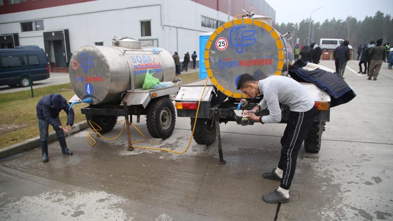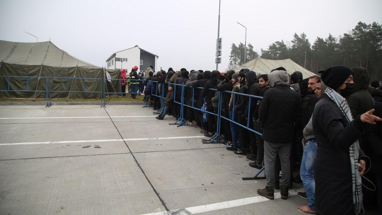 Belarus-Polonya sınırındaki göçmenlerin bir kısmı sınır kapısından ormanlık alandaki kampa geri dönerken, bir kısmı da geceyi geçirmeleri için hazırlanan lojistik merkeze geçti.