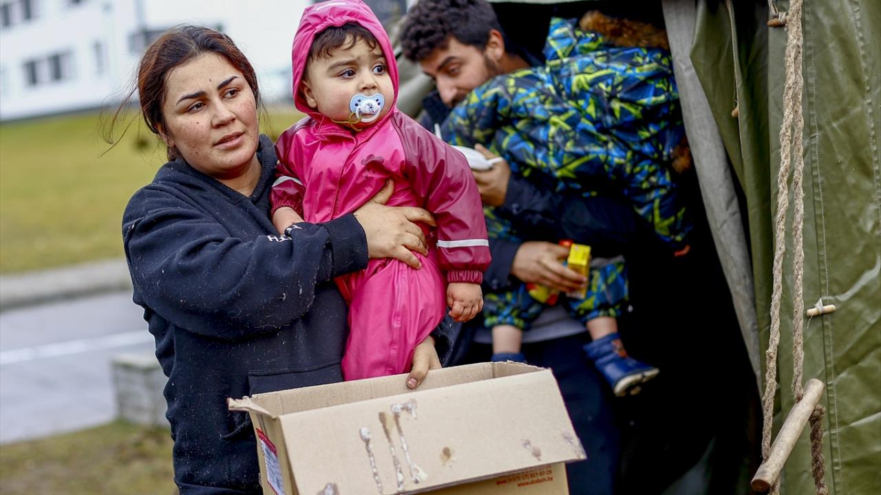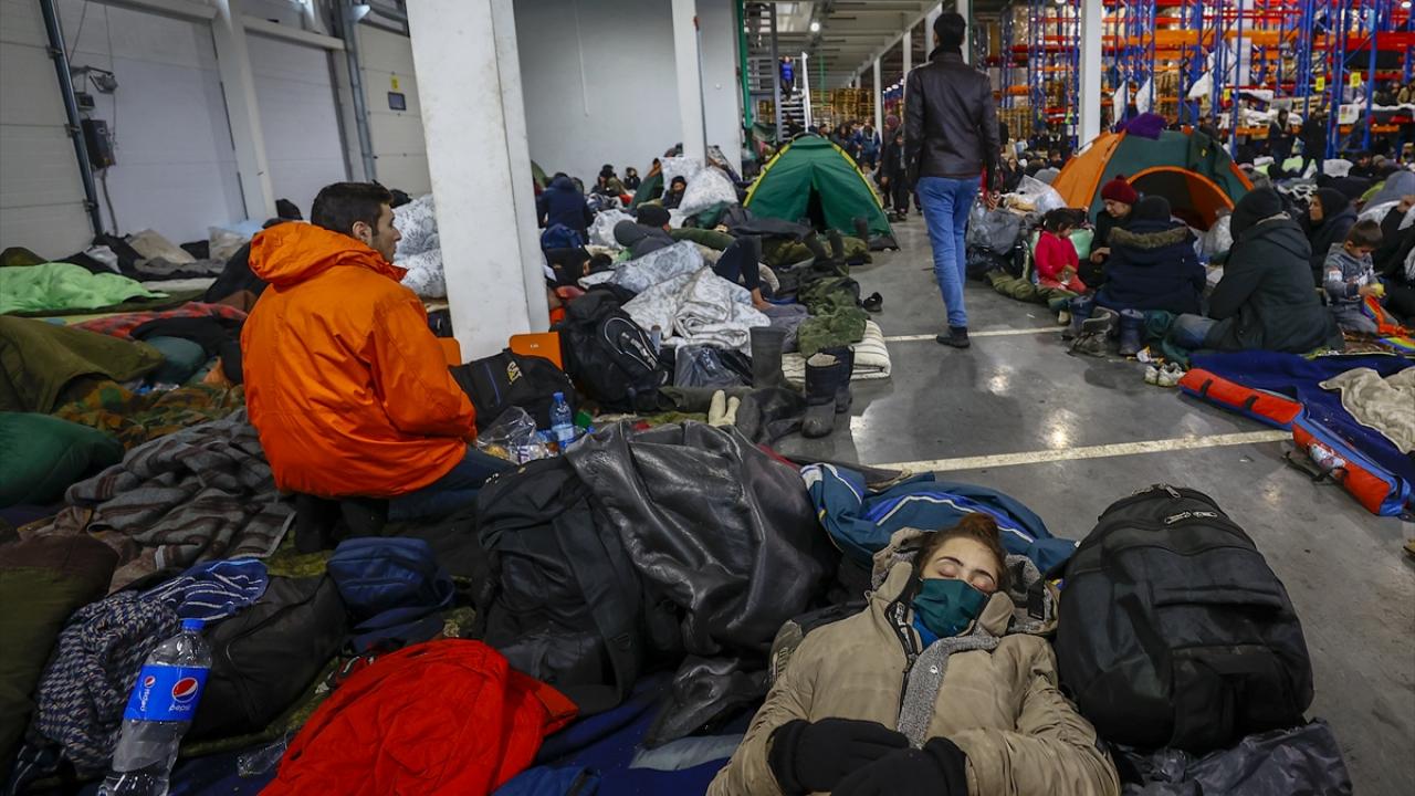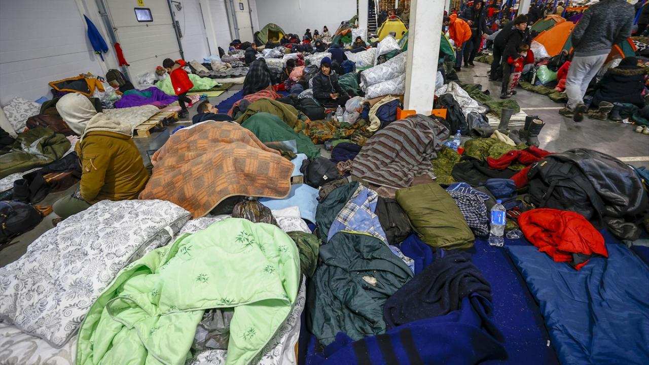 Günlerdir Polonya sınırı boyundaki çadırlarda bekleyen çok sayıda çocuk ve kadının bulunduğu 2 bin civarındaki kişi, uzun bir aradan sonra ilk kez sıcak bir ortamda uyudu. Çok az sayıda kişi geceyi bina dışında kurdukları çadırlarda geçirdi.