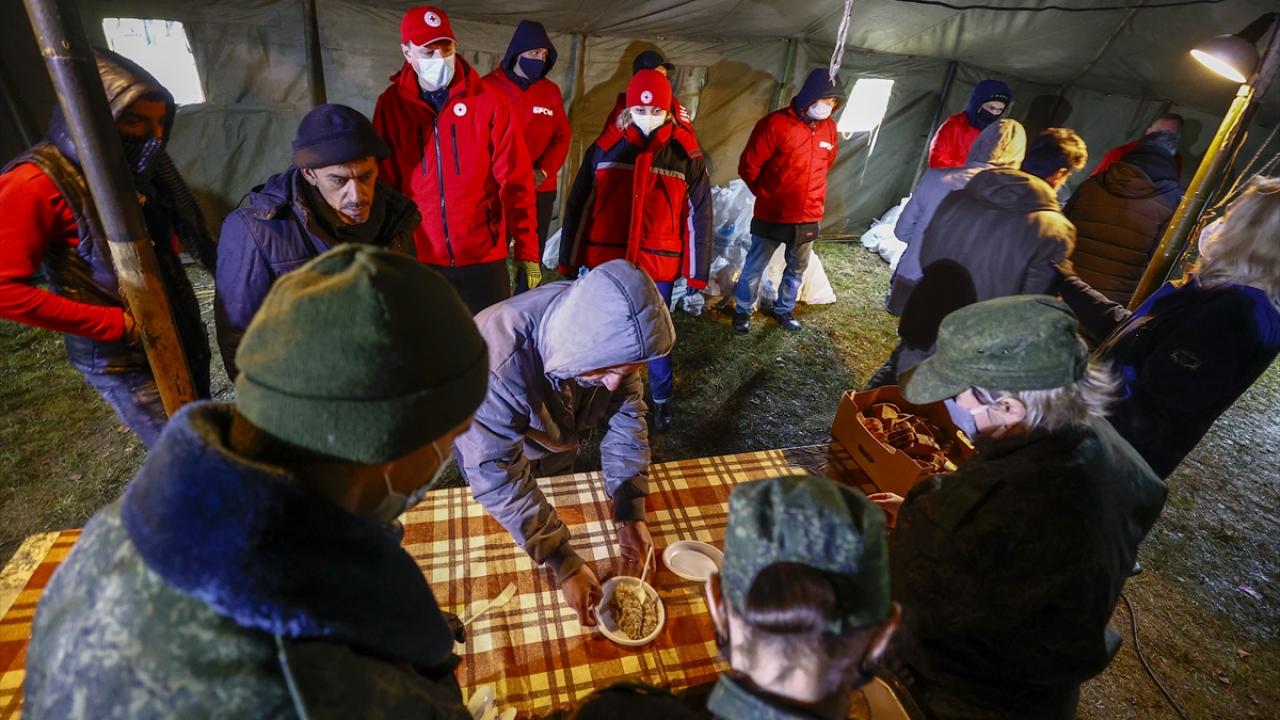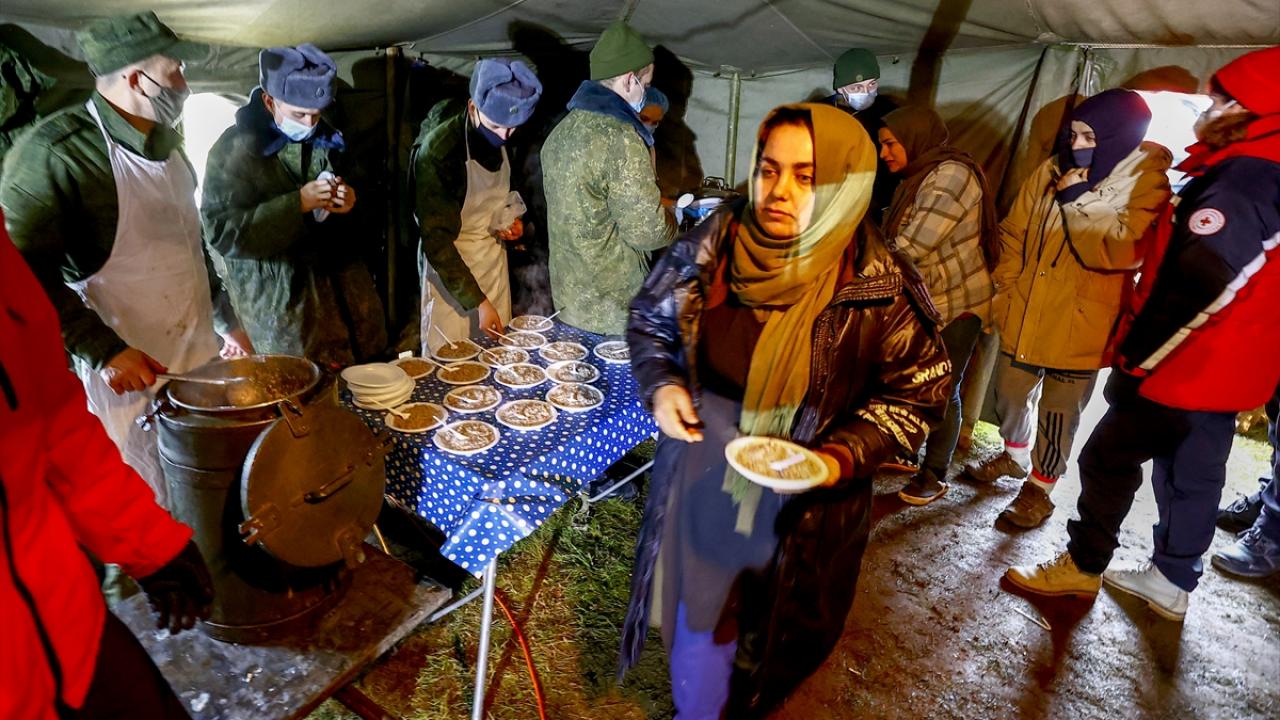 Belarus-Polonya sınırında, Avrupa’ya göçme arayışındaki kişiler sınır bölgesindeki kapalı alanda bekleyişlerine devam ediyor. Merkezin önünde, Belarus Acil Durumlar Bakanlığı, Belarus Kızılhaç görevlileri ve gönüllülerden oluşan ekip çadırlarda günde iki öğün sıcak yemek yardımı yapıyor. Su, hijyen ve tuvalet ihtiyacının da giderildiği alanda, giyecek ve battaniye yardımı zaman zaman yetersiz kalıyor.