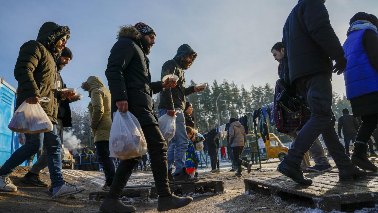 Belarus-Polonya sınırındaki Avrupa’ya göçme arayışındaki kişiler sınır bölgesindeki kapalı alanda bekleyişlerine devam ediyor.