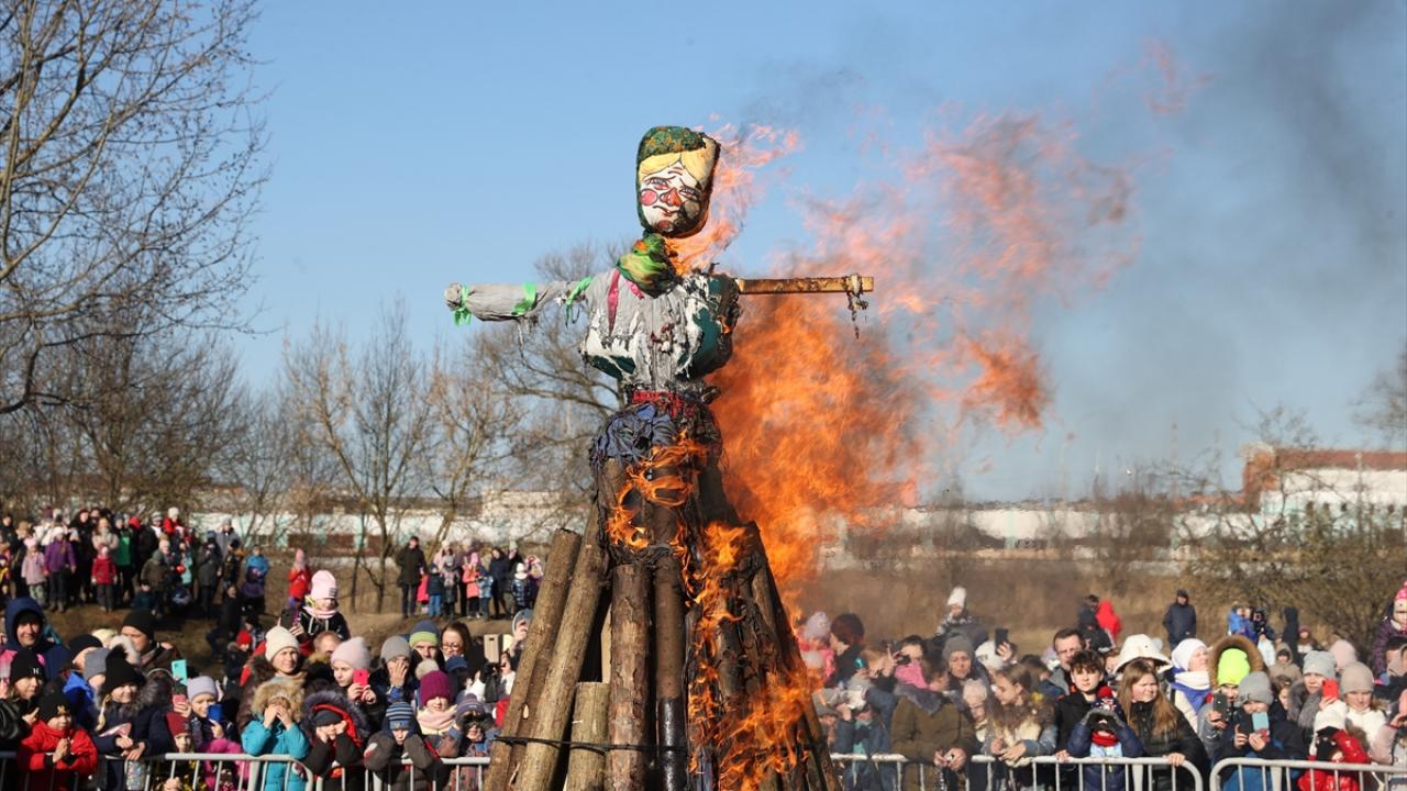 Belarus’un Minsk kentine bağlı Zavodsky ilçesinde kışa veda edilip baharın gelişinin kutlandığı halk festivali, Maslenitsa başladı.