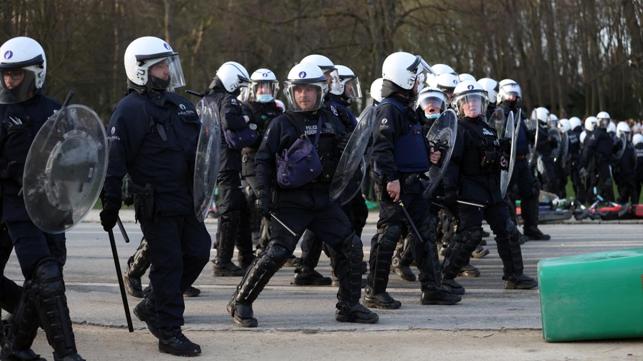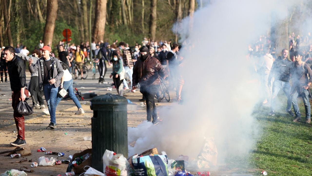 Brüksel polisi, COVID-19 salgını tedbirleri nedeniyle açık havada da olsa toplu halde bir arada bulunmanın yasak olduğu gerekçesiyle gençleri uyardı.