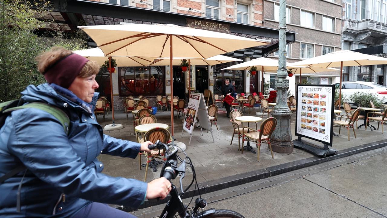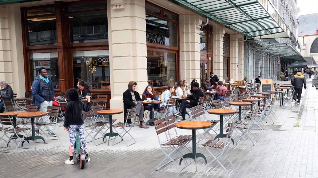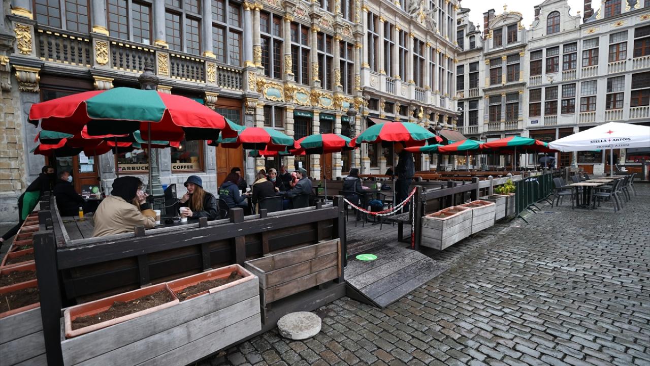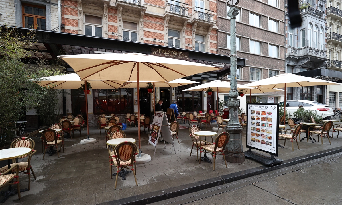 Başkent Brüksel`de salgın önlemleri kapsamında sadece açık bölümlerinde hizmet verecek olan işletmelerin teras ve bahçeleri, soğuk ve yağmurlu havaya rağmen günün ilk saatlerinden itibaren ilgi gördü.