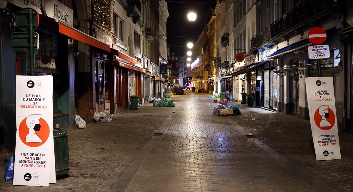 Belçika'da Covid-19 salgınında günlük vaka sayısının artması nedeniyle 1 ay süreyle gece yarısından sabah 05:00'e kadar sokağa çıkma yasağı uygulaması başladı.