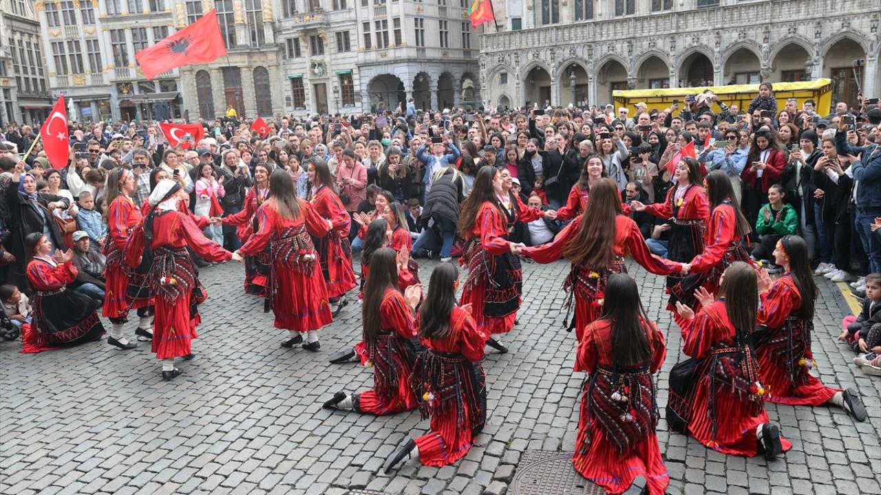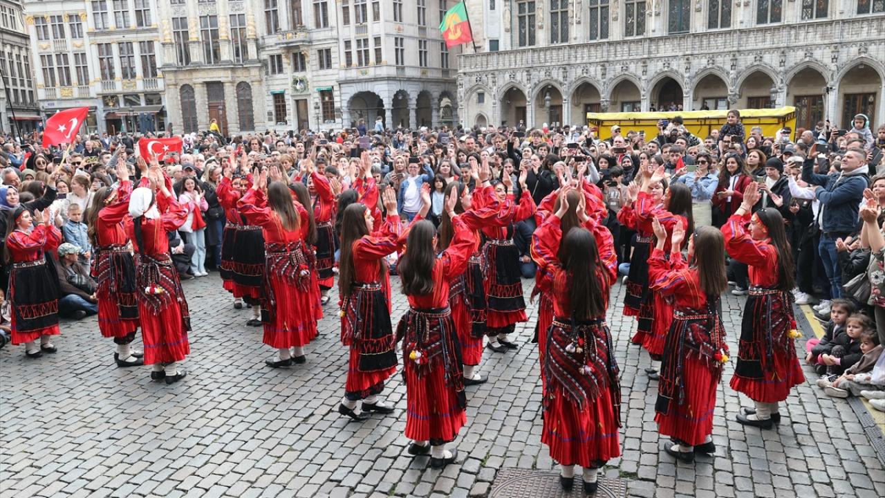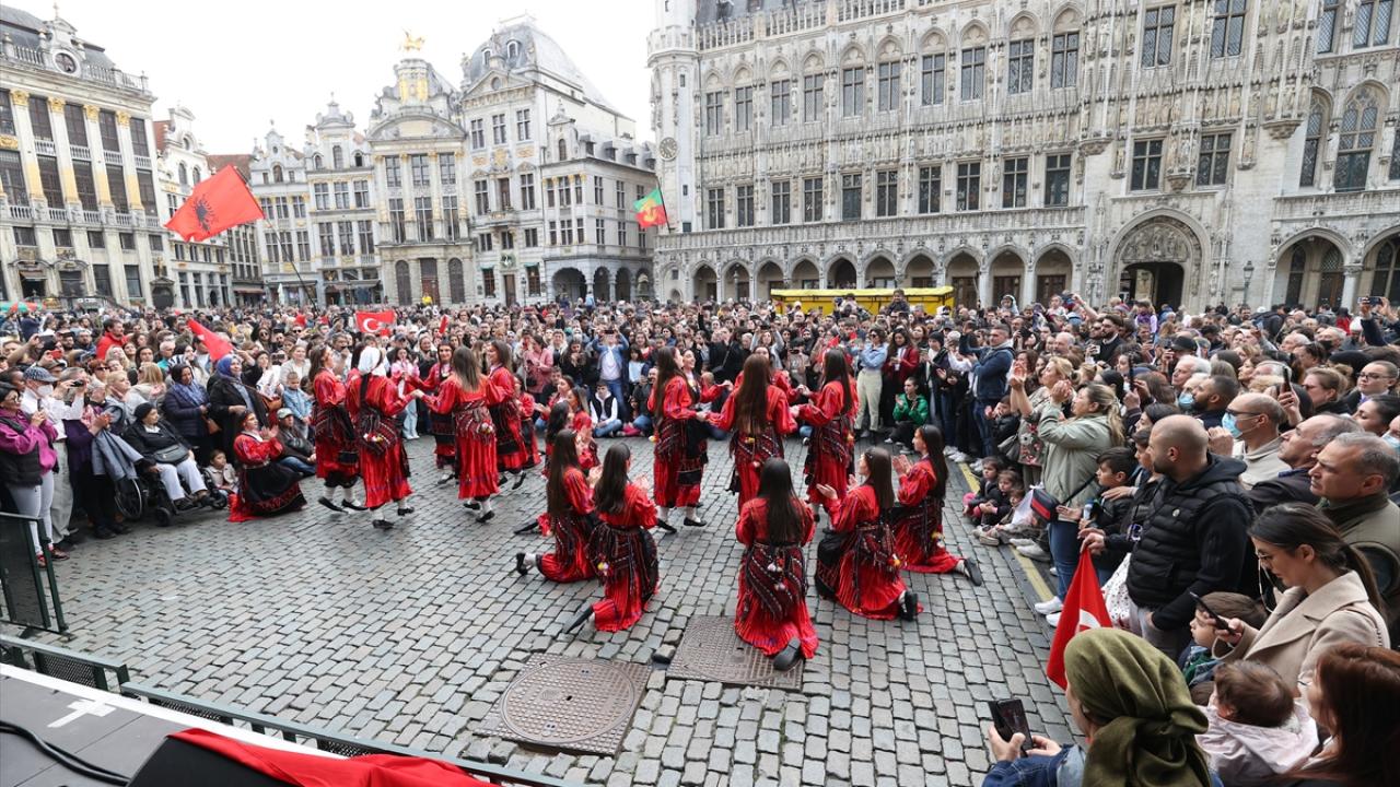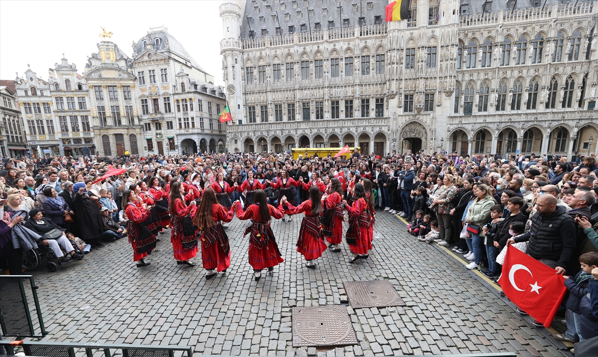 Brüksel`in merkezindeki turistik Grand Place meydanında Türk halk oyunları gösterisi düzenlendi.