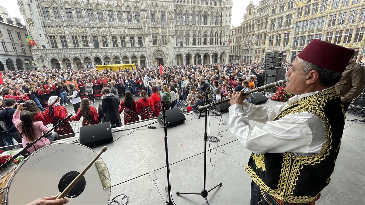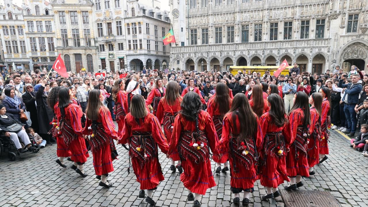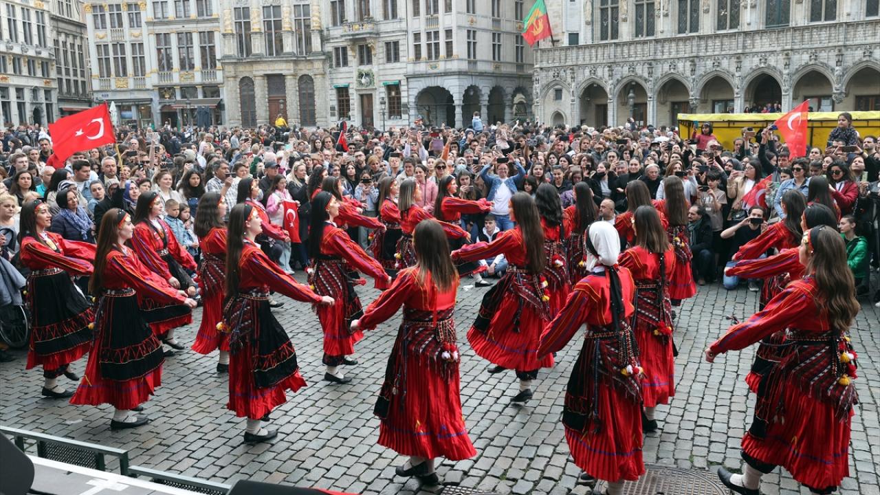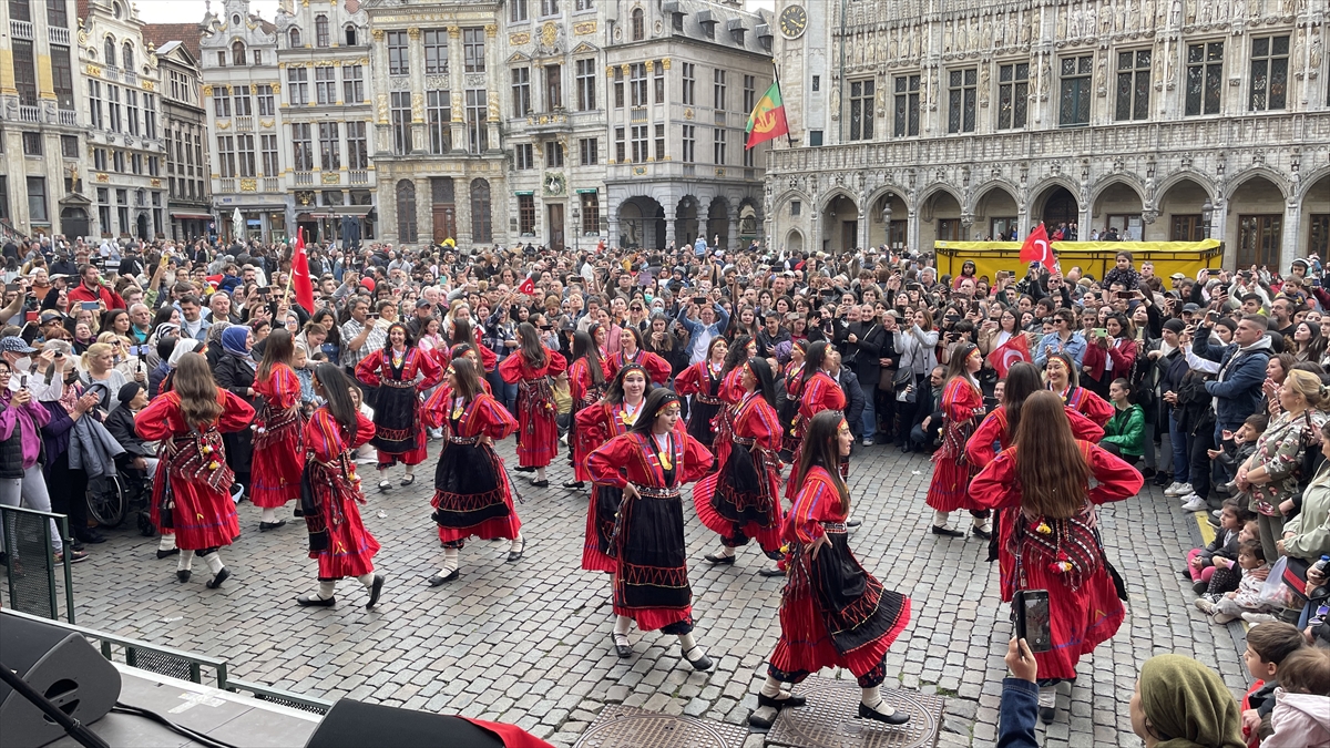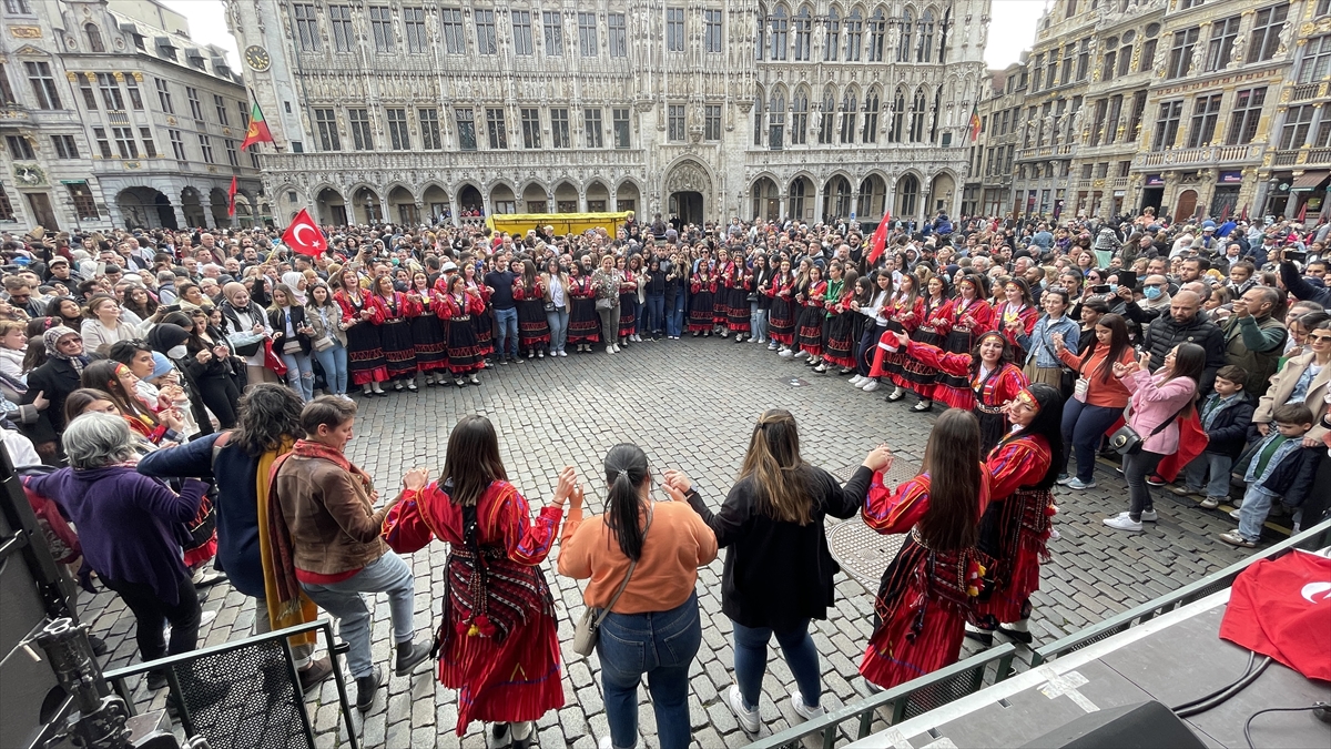 Brüksel`in merkezindeki turistik Grand Place meydanında Türk halk oyunları gösterisi düzenlendi.