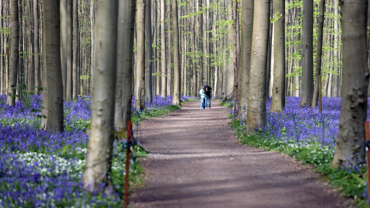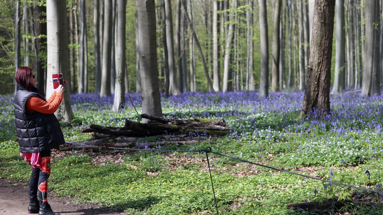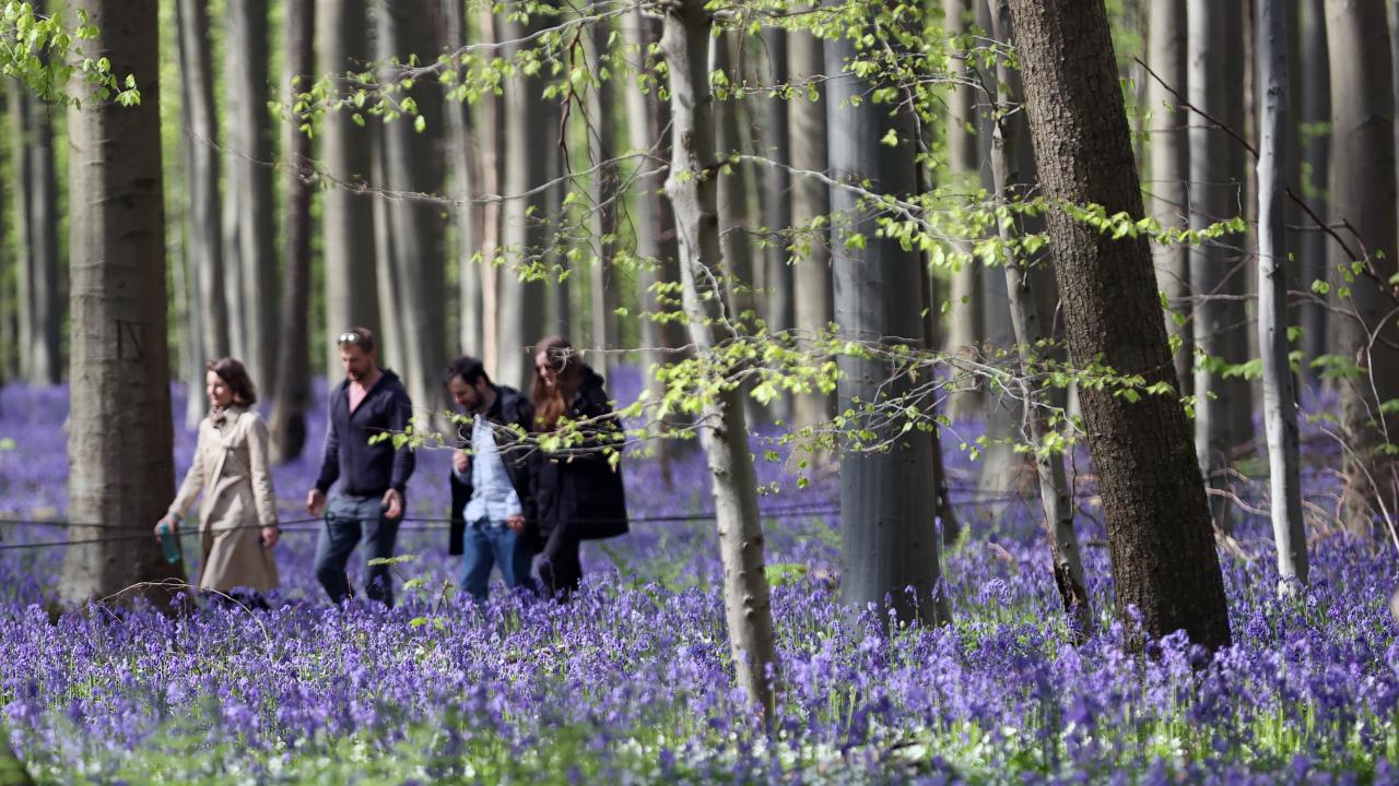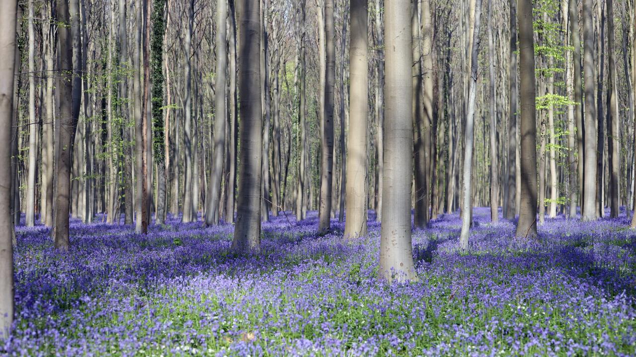 Belçika'nın Flaman bölgesindeki Halle kasabası yakınında yer alan Hallerbos Ormanı'nda nisanda açmaya başlayan çan çiçekleri ziyaretçileri büyülüyor.