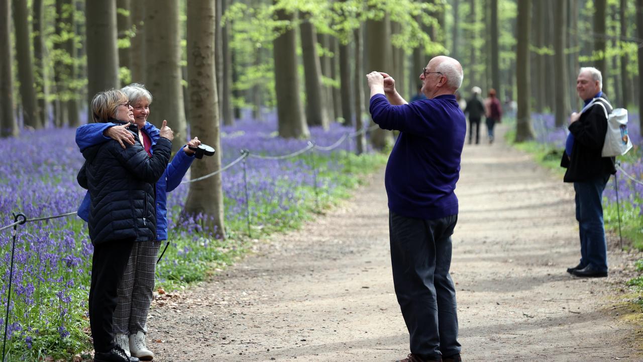Belçika'daki Hallerbos Ormanı'nda çan çiçekleri açmaya başladı