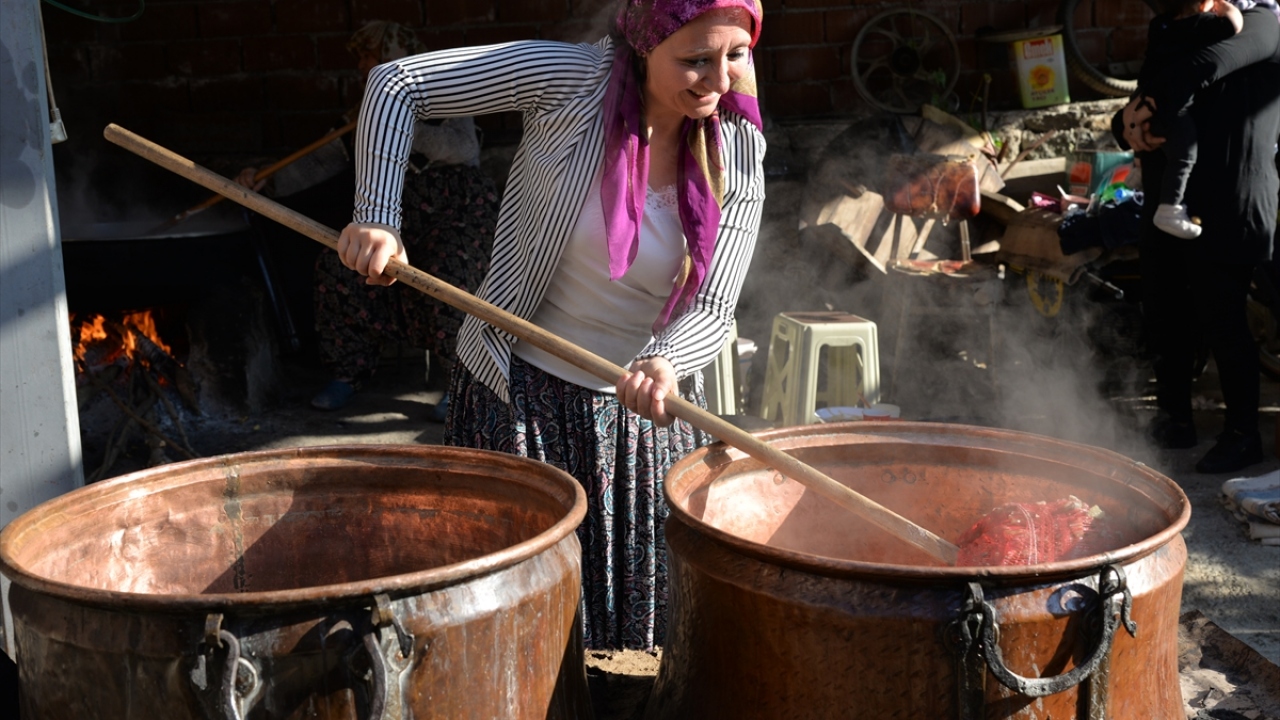 Komşularının da yardımıyla ürünleri yıkayıp soyduklarını anlatan Taş, "Kazanlarda kaynatıp süzdürdük. İçinde hiç şeker yok. Çok lezzetli oluyor. Yaptığımız pekmezleri tanıdıklara dağıtacağım, kalanını da satacağım." diye konuştu.