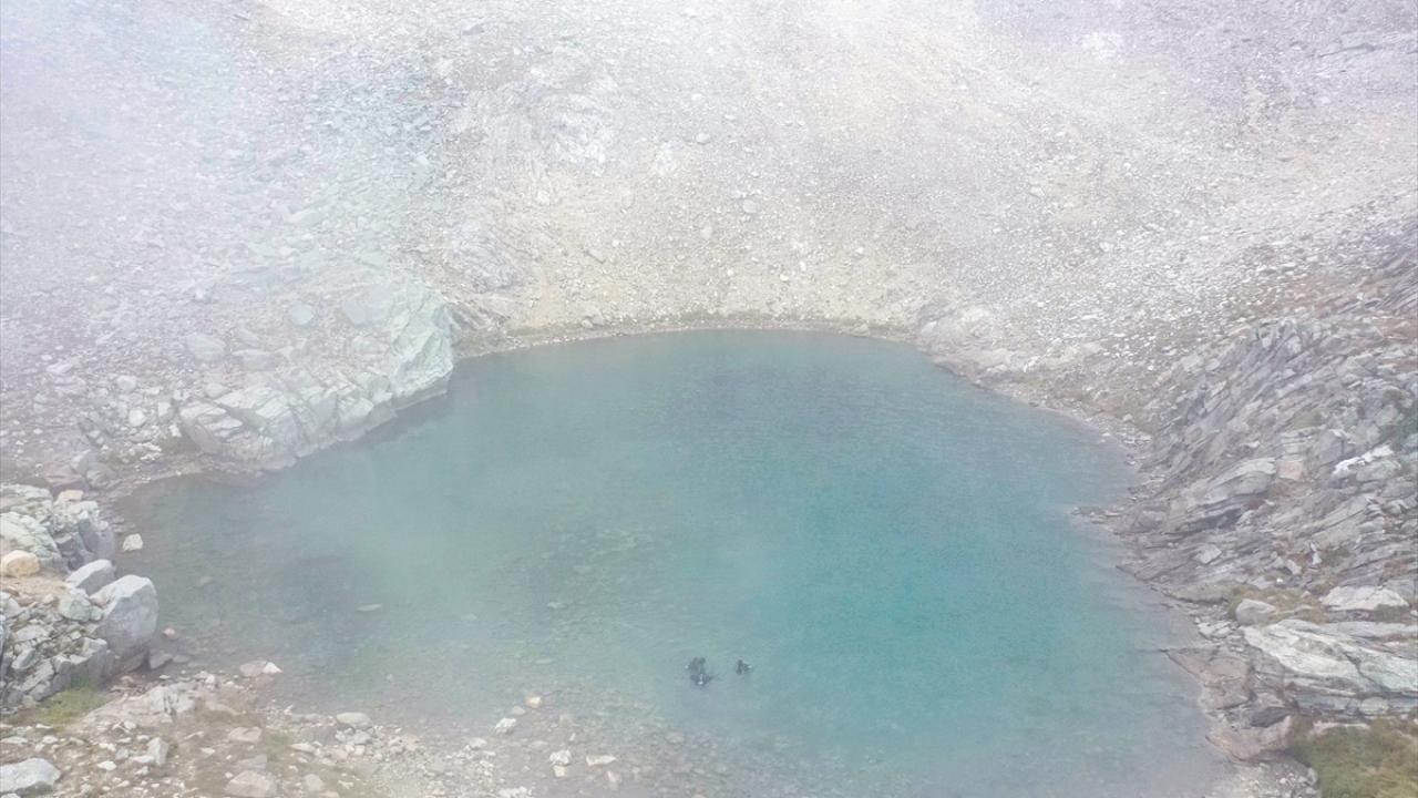 Belgesel için Uludağ zirvesindeki krater gölüne daldılar