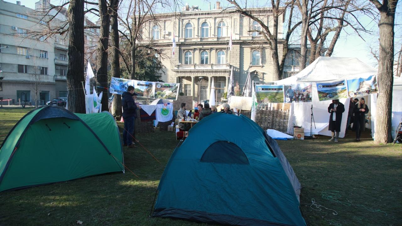Belgrad’da çevrecilerden Cumhurbaşkanlığı binası önünde çadırlı protesto