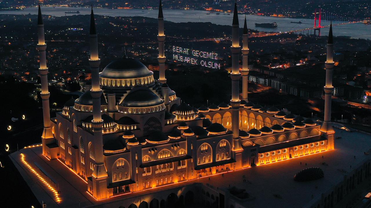 İstanbul`da, Berat Kandili dolayısıyla Çamlıca Camisi`nde program düzenlendi. Caminin minarelerine "Berat Gecemiz Mübarek Olsun" yazılı mahya asıldı.