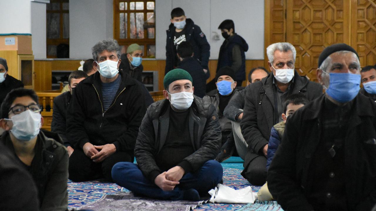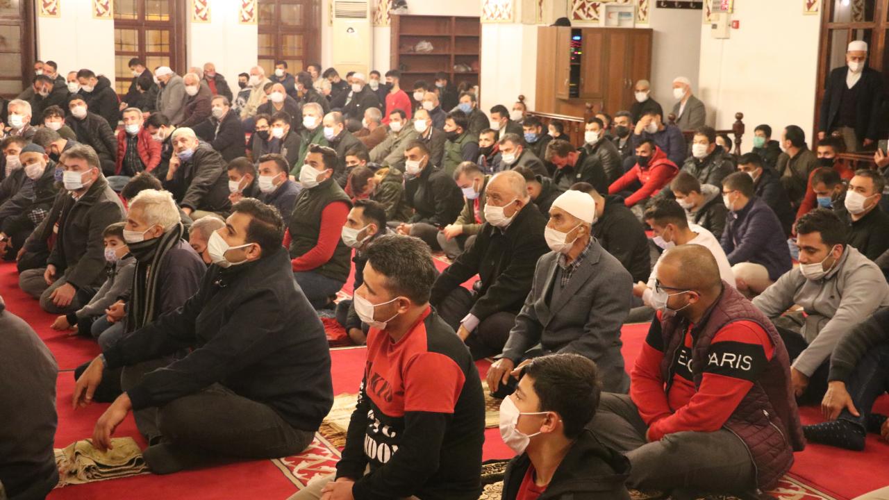 Malatya`da Berat Kandili dolayısıyla koronavirüs tedbirlerine riayet edilerek camilerde program düzenlendi.
