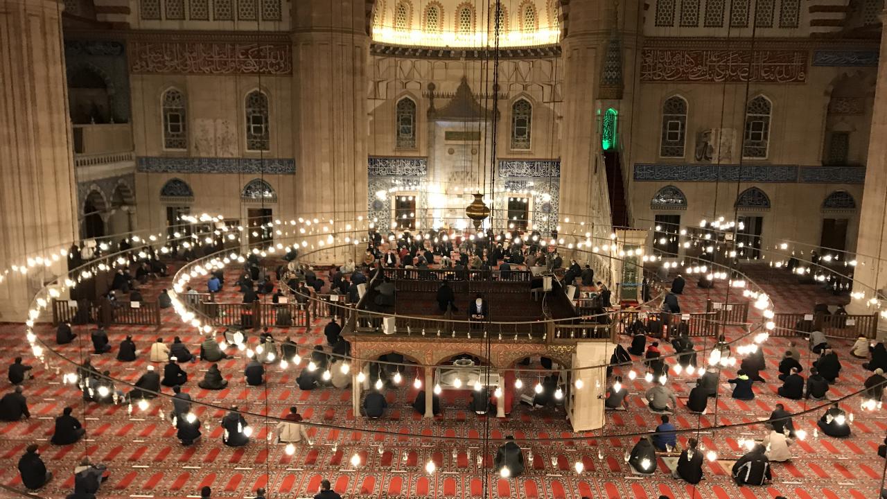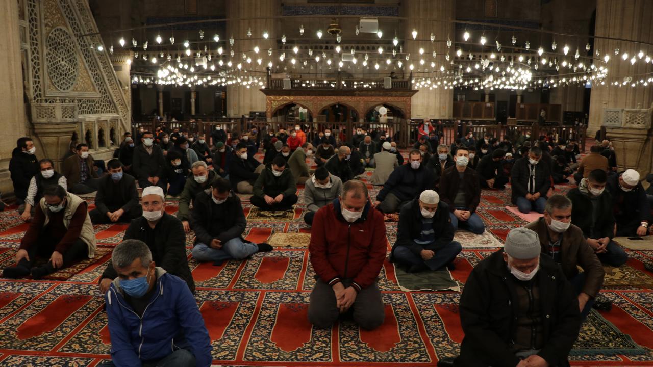 Kahramanmaraş`ta Berat Kandili dolayısıyla koronavirüs tedbirlerine riayet edilerek camilerde program düzenlendi.