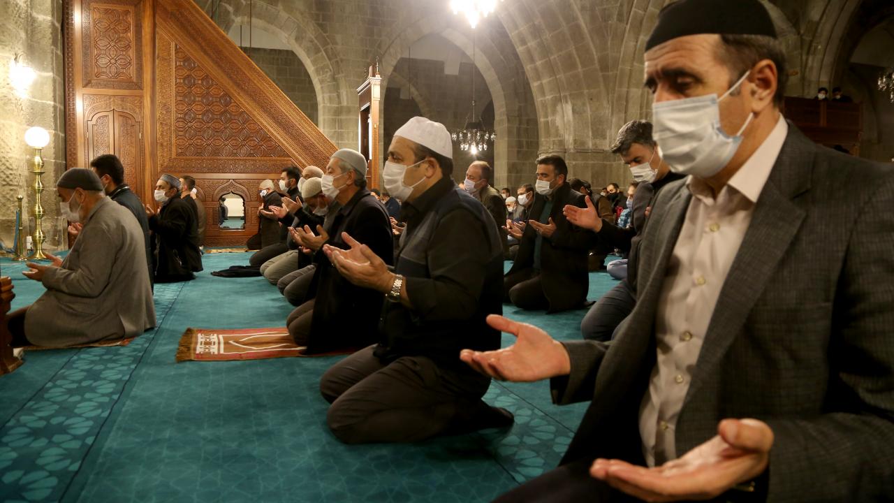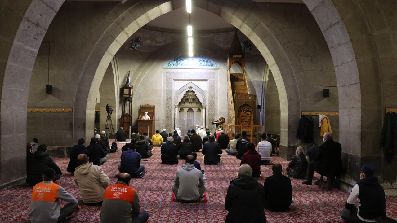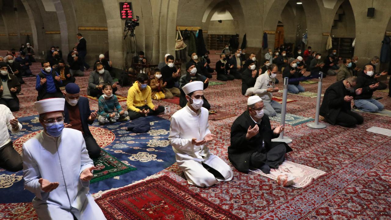 Kayseri`de akşam namazının ardından tarihi Hunat Camisi`nde Berat Kandili dolayısıyla program düzenlendi. Namazın ardından dua edildi.
