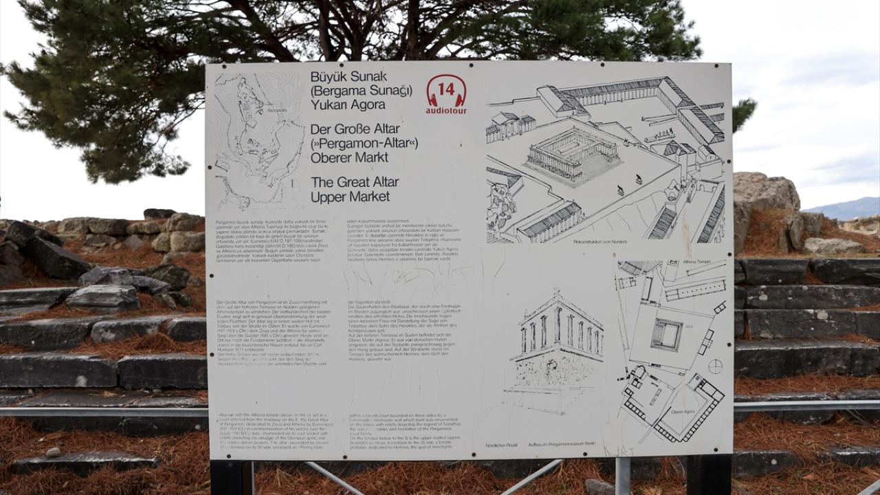 Koştu, Akropol`de inşa edilmiş Zeus Sunağı`nın Pergamon Krallığı`nın olgunluk dönemi eseri olduğunu anlatarak, "Çok önemli bir sunak. Buna benzer başka sunaklar da var ama Zeus Sunağı yekpare ve sanatsal özellikleri açısından çok değerli. 140 yıl önce buradan usulca Almanya`ya gönderildi. Bergama halkı uzun yıllardır bunu geri istiyor" dedi.