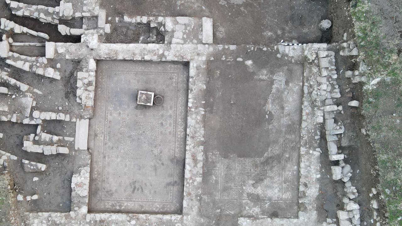 Müze Müdürlüğünün çalışmalarıyla açığa çıkarılan buluntulara, Kızıl Avlu çevresindeki bir dini alana ait olduğu tahmin edilen yapının tabanındaki mozaikler de eklendi.