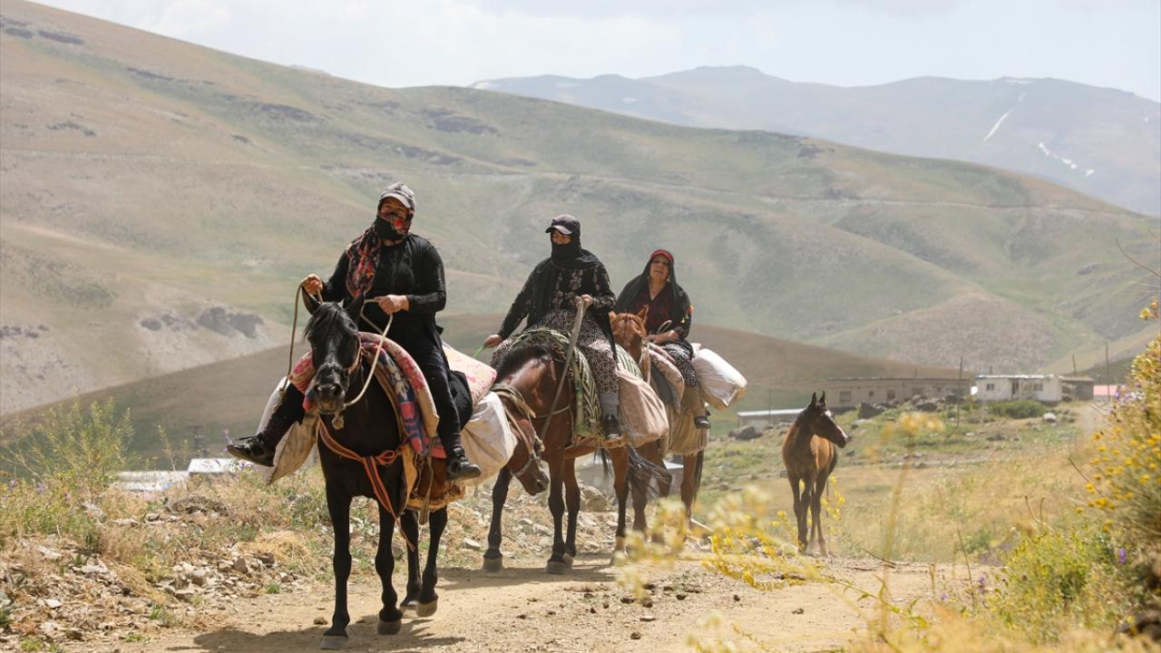 İşlerini tamamlayıp yayla yolunu tutan berivanlar, atlarla patika yolları, vadileri ve dik tepeleri aşarak, koyun sürülerinin bulunduğu 8 kilometre uzaklıktaki 2 bin 750 rakımlı yaylaya ulaşıyor.
