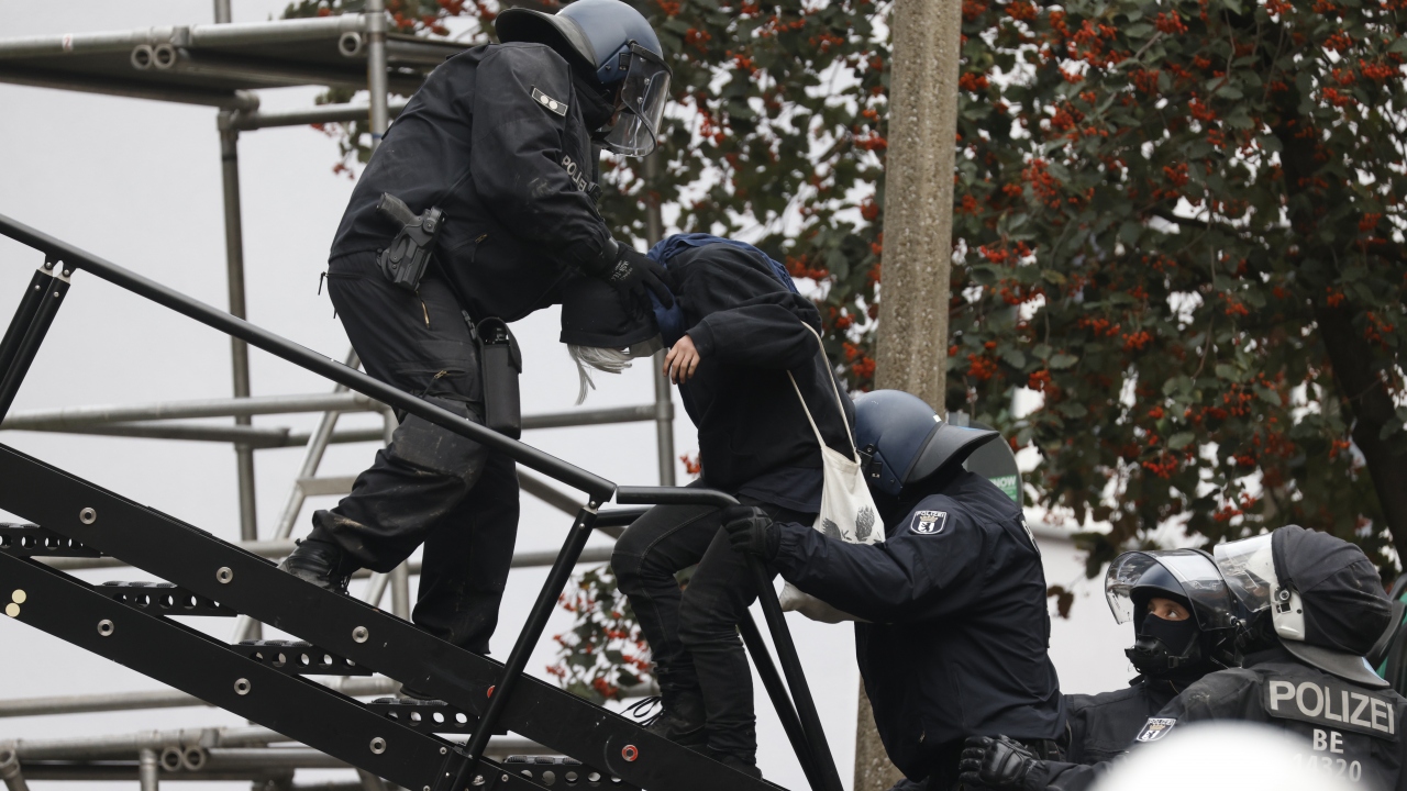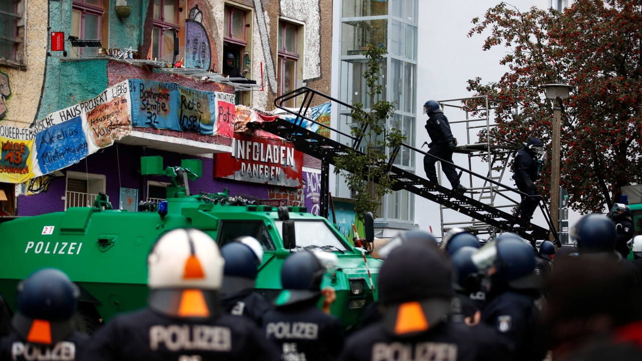 Almanya’nın başkenti Berlin’de aşırı solcuların işgal ettiği ve bir süredir terk etmemekte direndiği bina polis müdahalesiyle tahliye ediliyor.