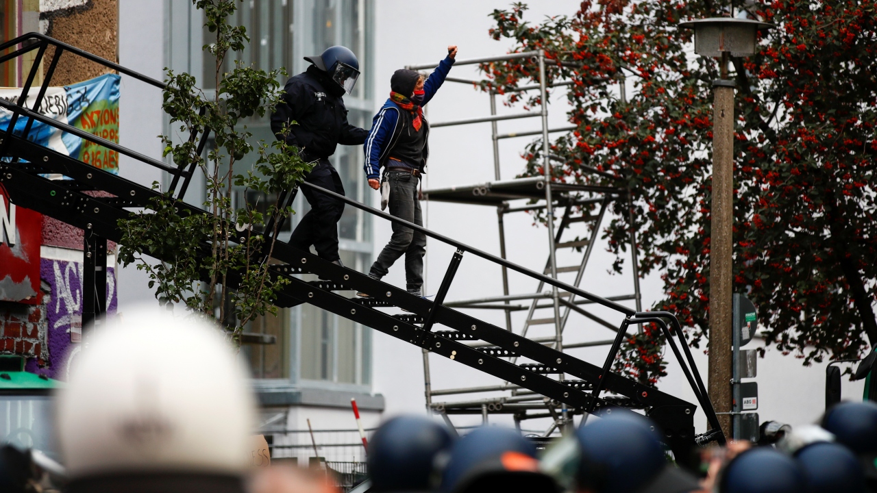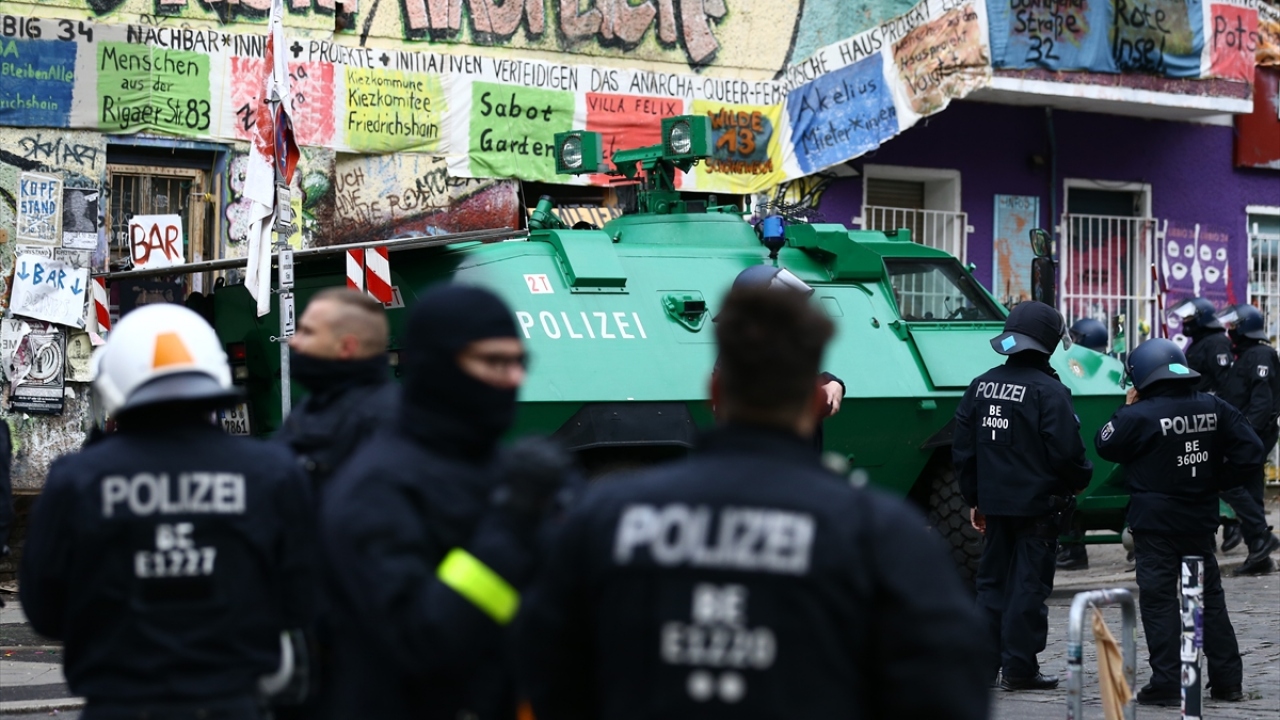 Berlin’de aşırı solcuların işgal ettiği bina polis operasyonula tahliye ediliyor