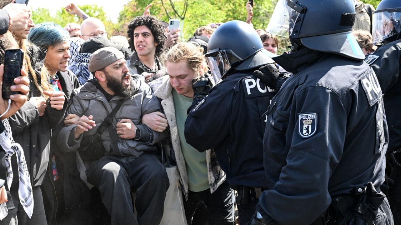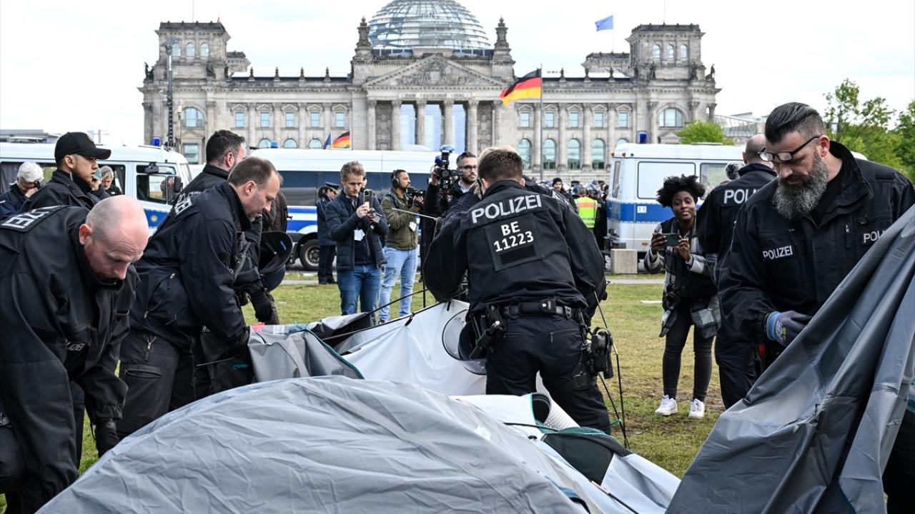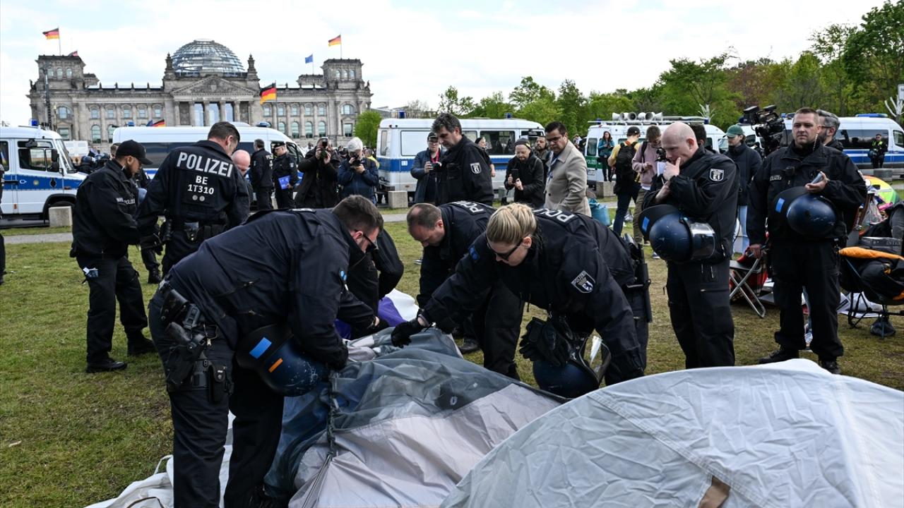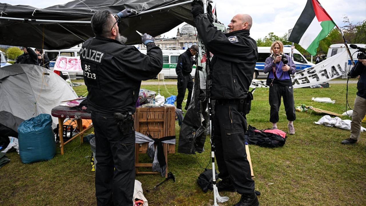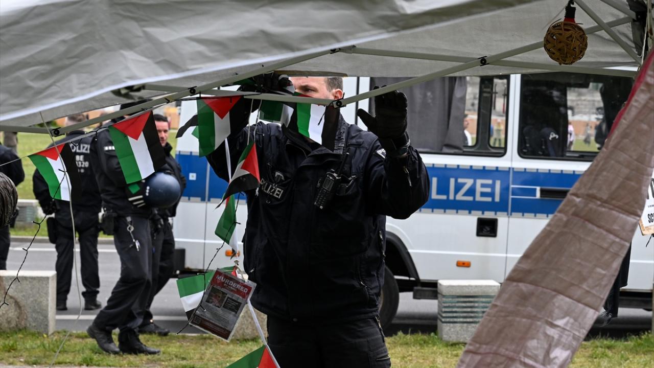 Almanya hükümetinin Filistin destekçileri tarafından oluşturulan 'Gazze'ye destek' kampını boşaltma kararı sonrası polis ekipleri göstericilere müdahale etti. Bazı göstericiler gözaltına alındı.