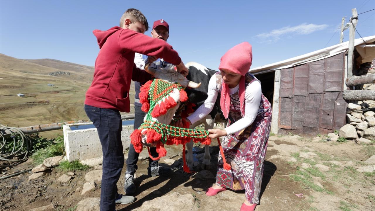 Günler öncesinden kuşak ve peştamalın yanı sıra `çal yeleği` diye bilinen yöresel kıyafetlerini hazırlayan kadınlar, hayvanlarını da nazarlık, renkli ip ve boncuklardan yaptıkları ürünlerle süsledi.