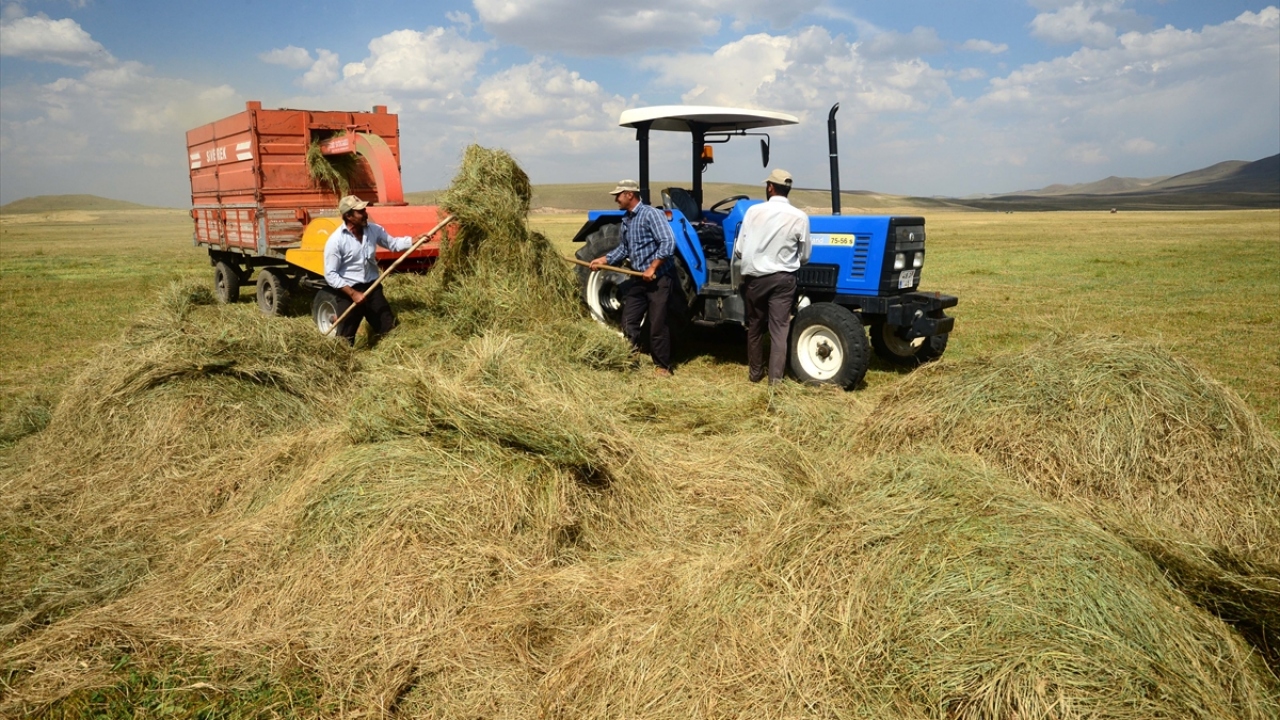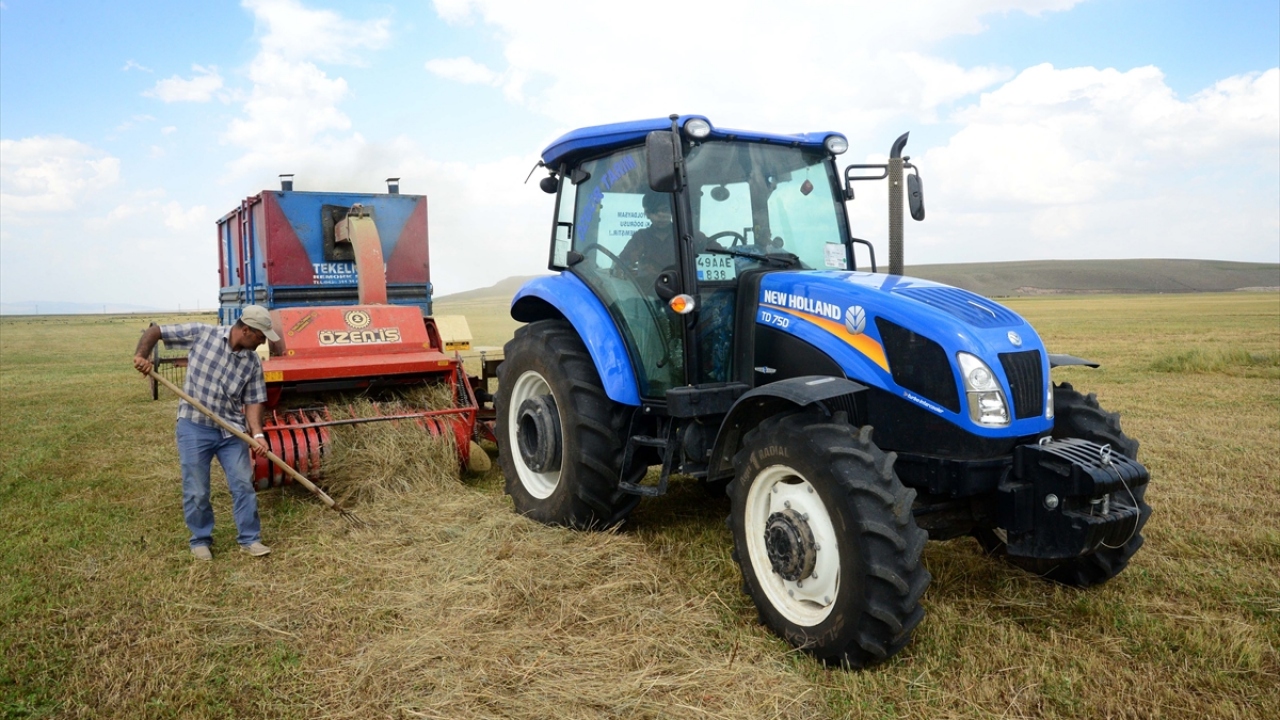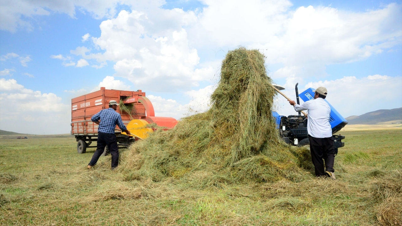 Türkiye'nin önemli hayvancılık merkezlerinden Muş'ta besiciler, çetin geçen kış mevsiminde hayvanların yem ihtiyacı karşılamak için tarlada sıcak havaya rağmen biçtikleri otları samana dönüştürüyor.