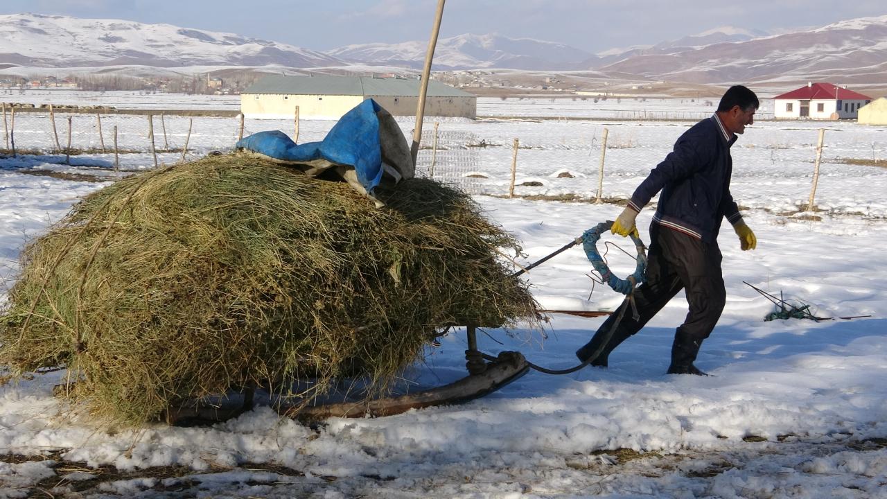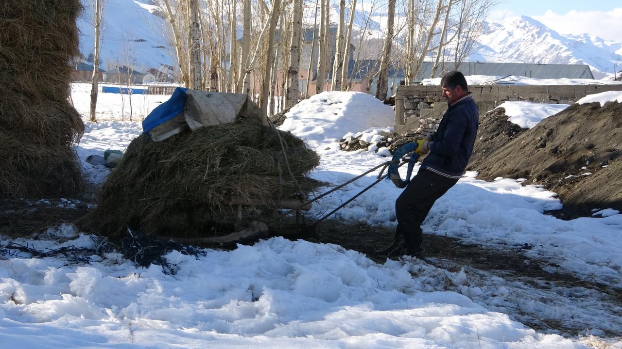 30 yıldır hayvancılıkla uğraştıklarını belirten Yunus Şahin, ``Kışımız 6 ay boyunca devam ediyor. Yazın ot biçmek, kışın da kar temizlemekle günlerimiz geçiyor. Bu şekilde zorlu bir yaşamımız var. Yazın ovada biçtiğimiz otları traktör yardımıyla köyde stokluyoruz. Kışın da at ve eşek arabalarının yardımıyla otları taşıyarak hayvanlarımızı besliyoruz. 6 ay boyunca her gün aynı şekilde bu işi yapıyoruz. Geçim kaynağımız böyledir. Ben bu işi 30 yıldır sürdürüyorum`` dedi.