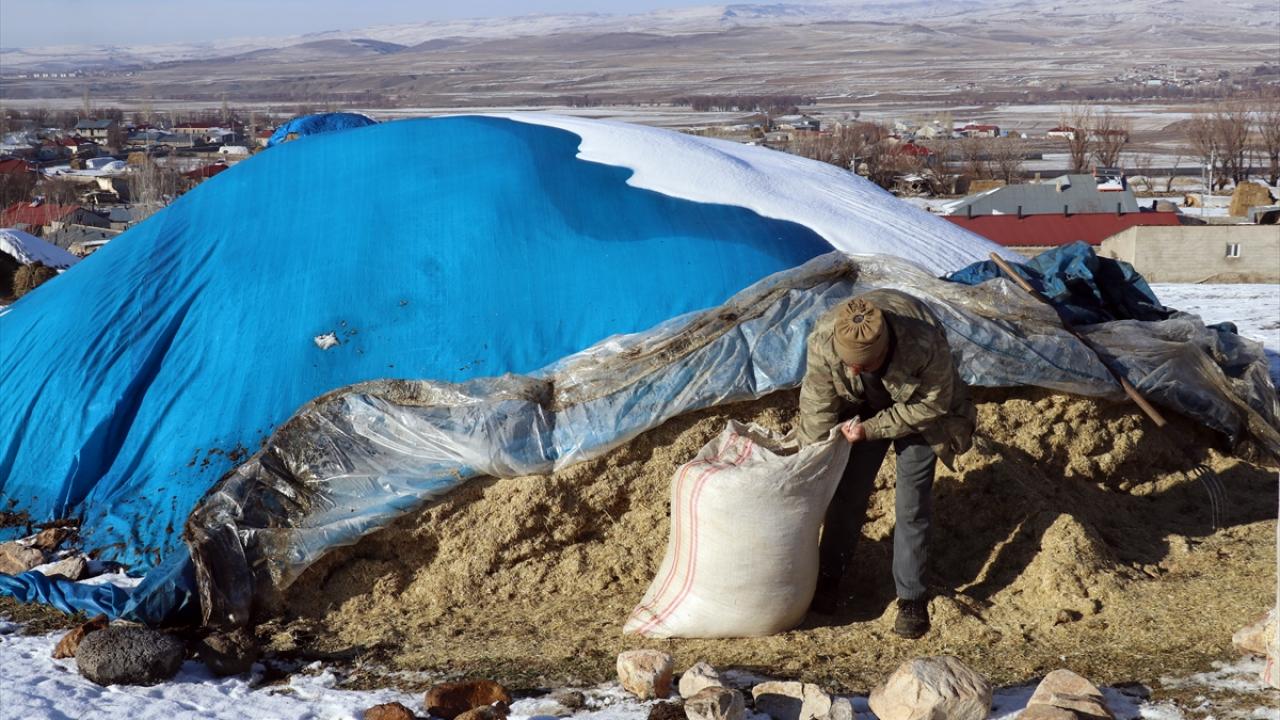 "5-6 ay karın altında kalıyoruz. Çiftçilik zordur, kolay değildir. 2-3 ay değil, 5 ay. Sabah kalkıyoruz hayvanın otunu ve samanını veriyoruz. Öğleden sonra da aynı şeyi yapıyoruz. Kar fazla olduğunda ezip üzerine otu seriyoruz. Havaların kötü olduğu günler için de ot ve samanımızın bir kısmını evin önüne yığdık."