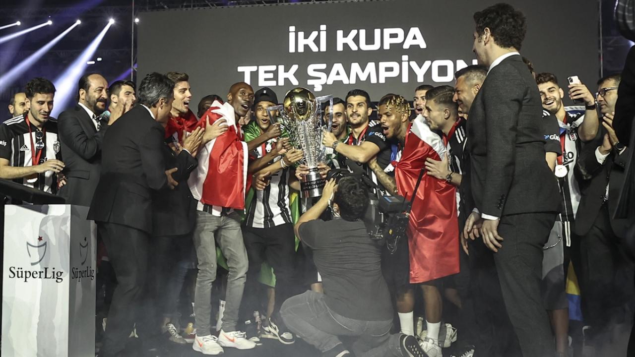 Türkiye Futbol Federasyonu Başkanı Nihat Özdemir şampiyonluk kupasını Beşiktaş`ın tecrübeli oyuncuları Atiba Hutchinson ile Necip Uysal`a verdi. İki oyuncu takım arkadaşlarının da kendilerine katılmasının ardından kupayı kaldırdı. Yöneticiler, teknik heyet, oyuncular ve aileleri sahnede büyük bir coşku yaşadı.