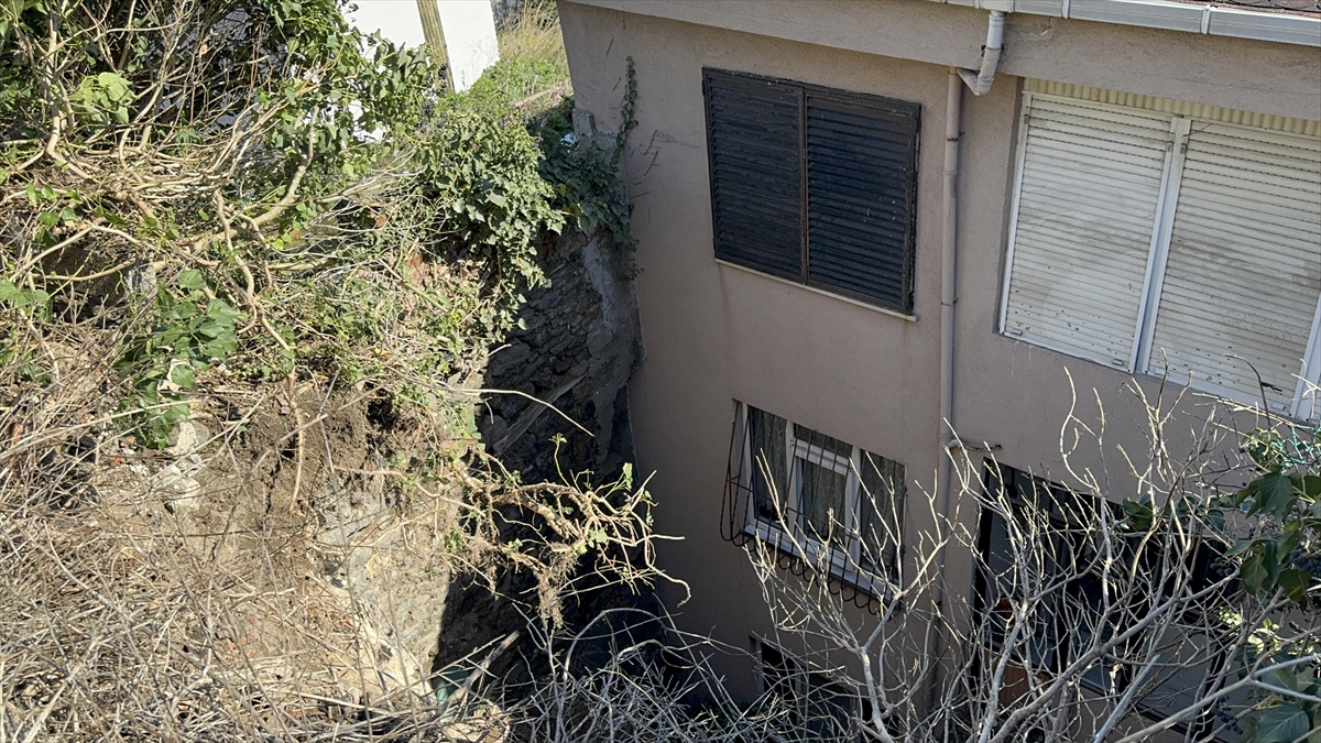 Mecidiye Mahallesi Kabalak Sokak`ta boş arazide toprak kayması meydana geldi. Araziden kopan taş ve toprak parçaları, dört katlı binanın boşluğuna düştü.