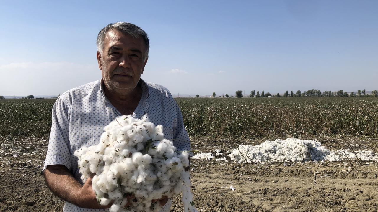 Çiftçi Selim Ünal, "Bu yıl kuraklık ve sıcaklar nedeniyle pamukta verim düşük. Açıklanan fiyat güzel ama dönümde 100 kilogram düşüş var" dedi.