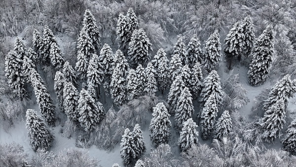 Beyaz örtüyle kaplanan Çam Dağı havadan görüntülendi