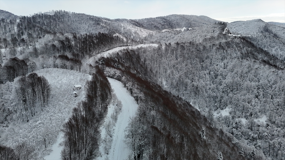 Zengin bitki çeşidiyle "doğa ve kültür yolu" üzerinde yer alan bölgede ormanlar karla kaplandı.
